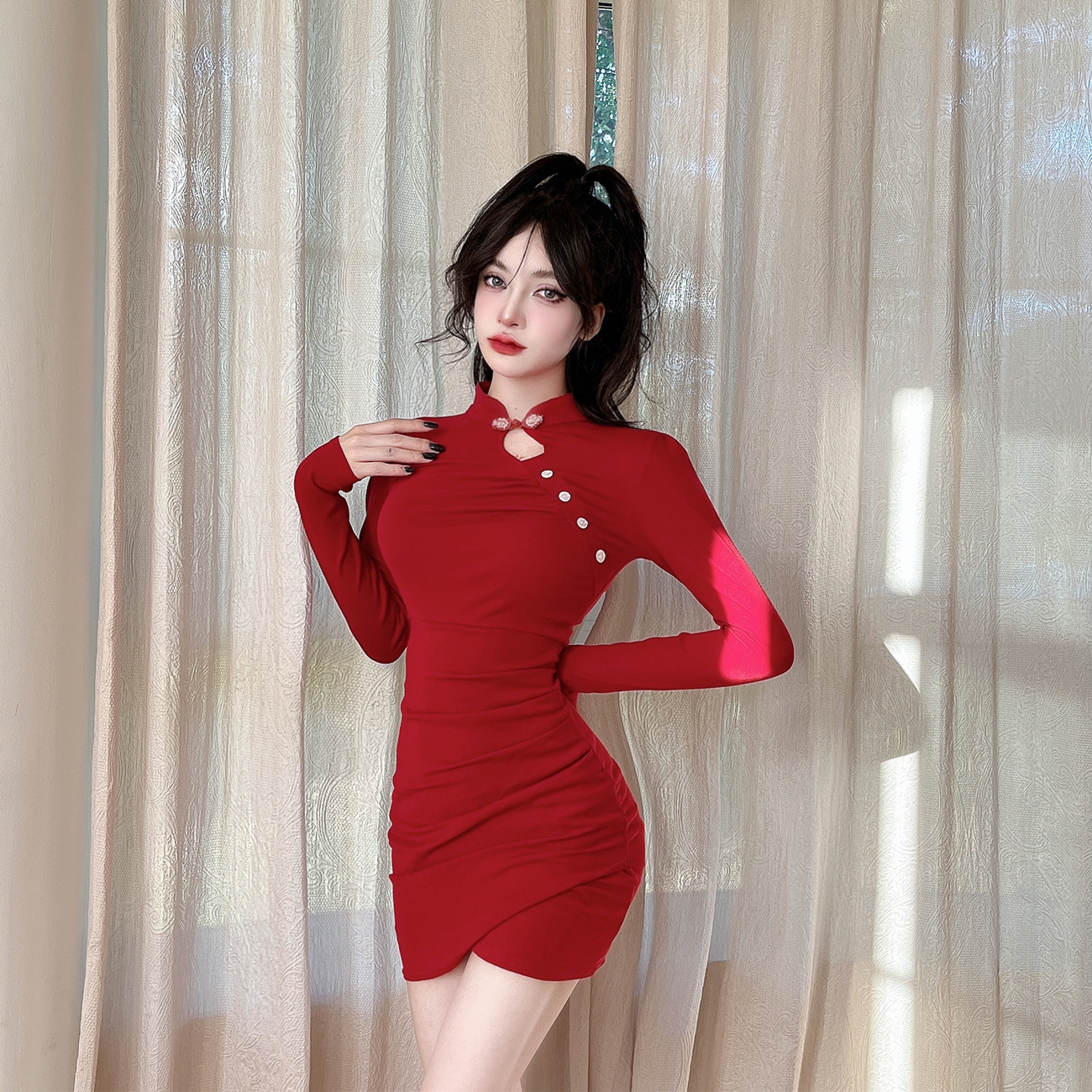S 建议80-95斤 裙长79cm 胸围80-88 cm 腰围64-74 cm 袖长57