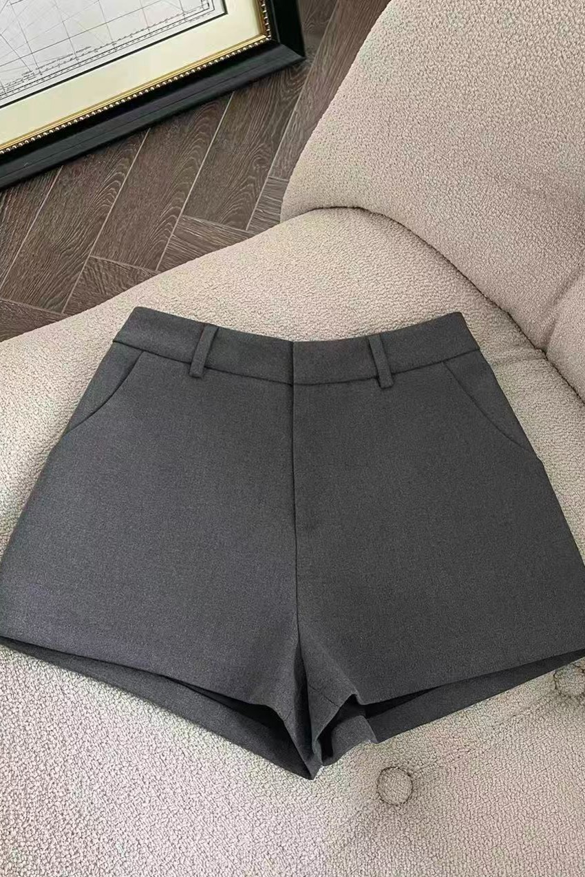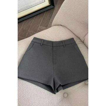 FA46780# 黑色西装短裤女新款毛呢秋冬外穿阔腿灰色小个子显瘦休闲热裤 服裝批發女裝批發服飾貨源