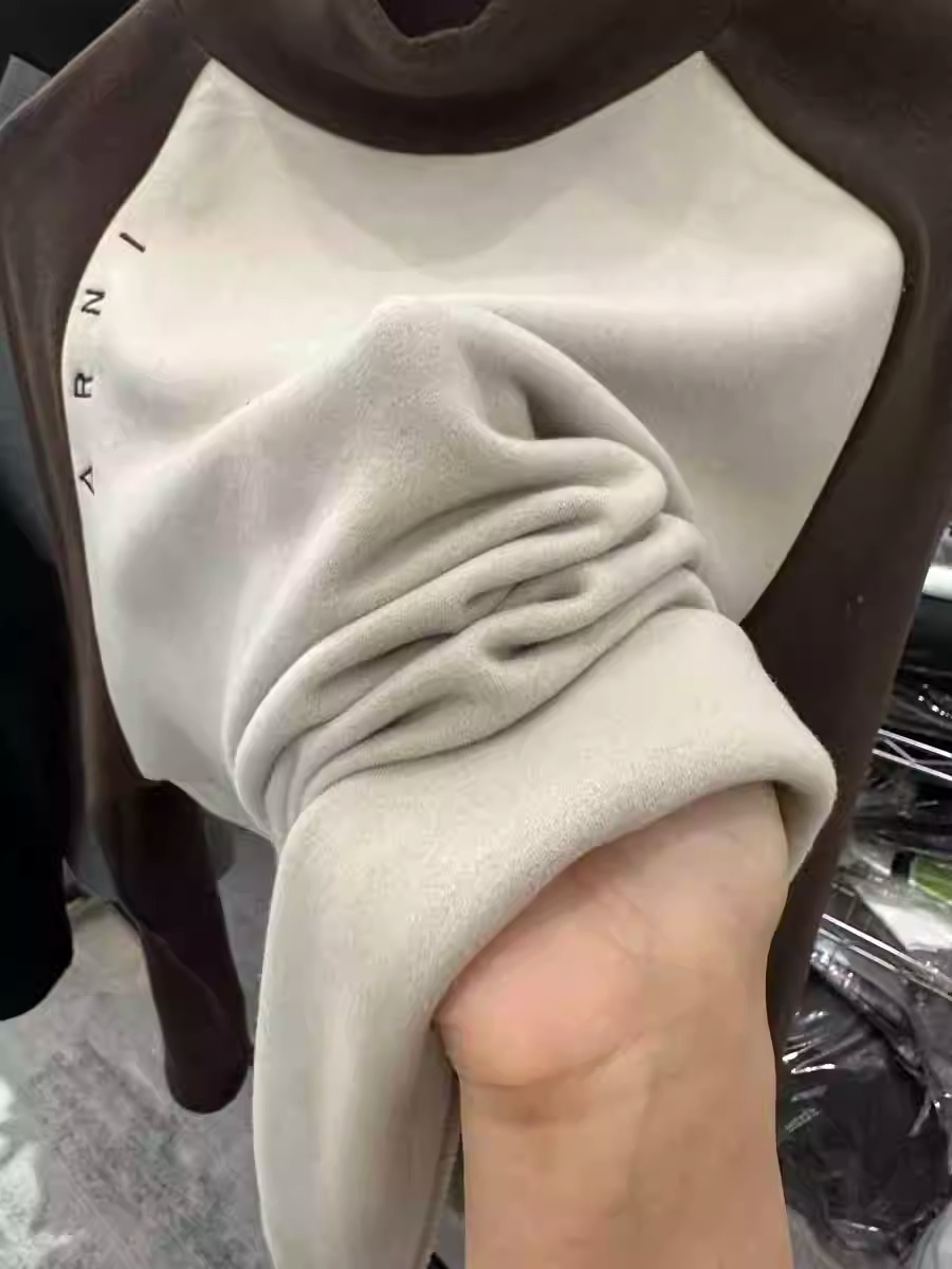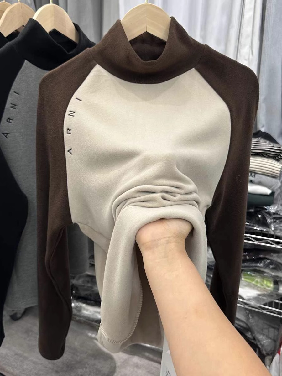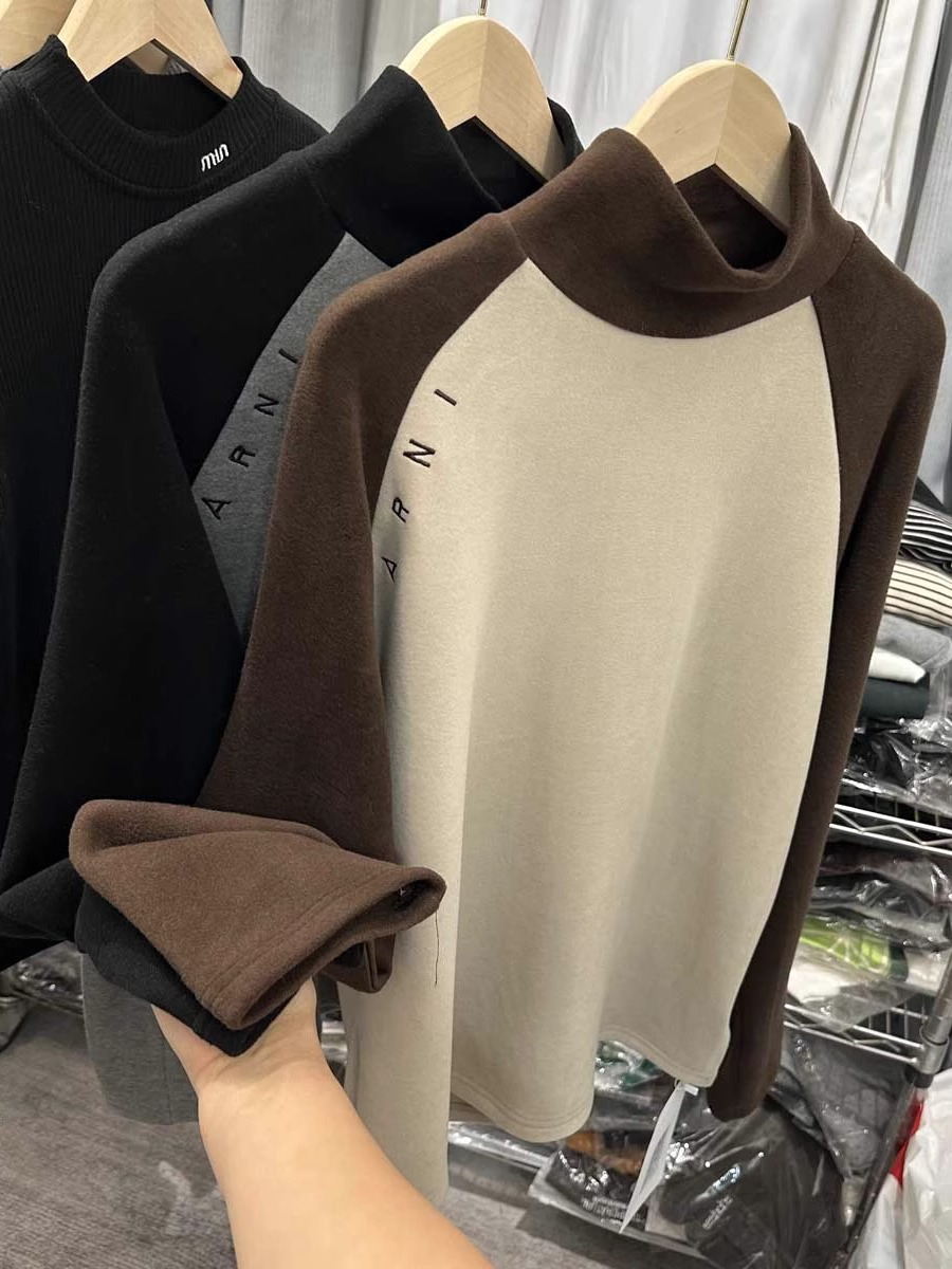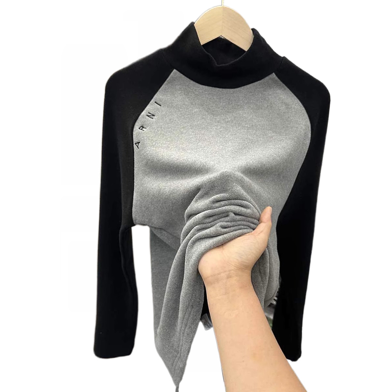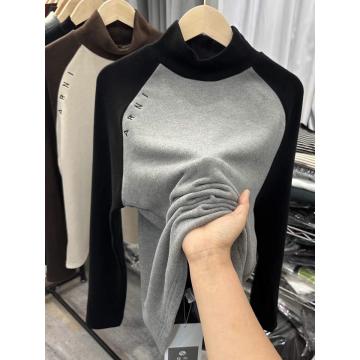 FA46901# 好品双面磨毛澳绒高领T恤女秋冬厚实接拼洋气内搭打底衫刺绣自留 服裝批發女裝批發服飾貨源