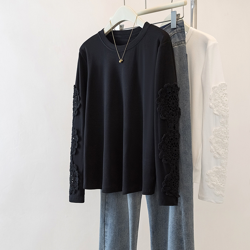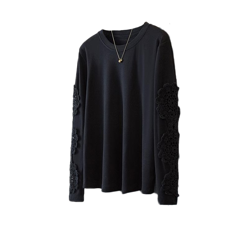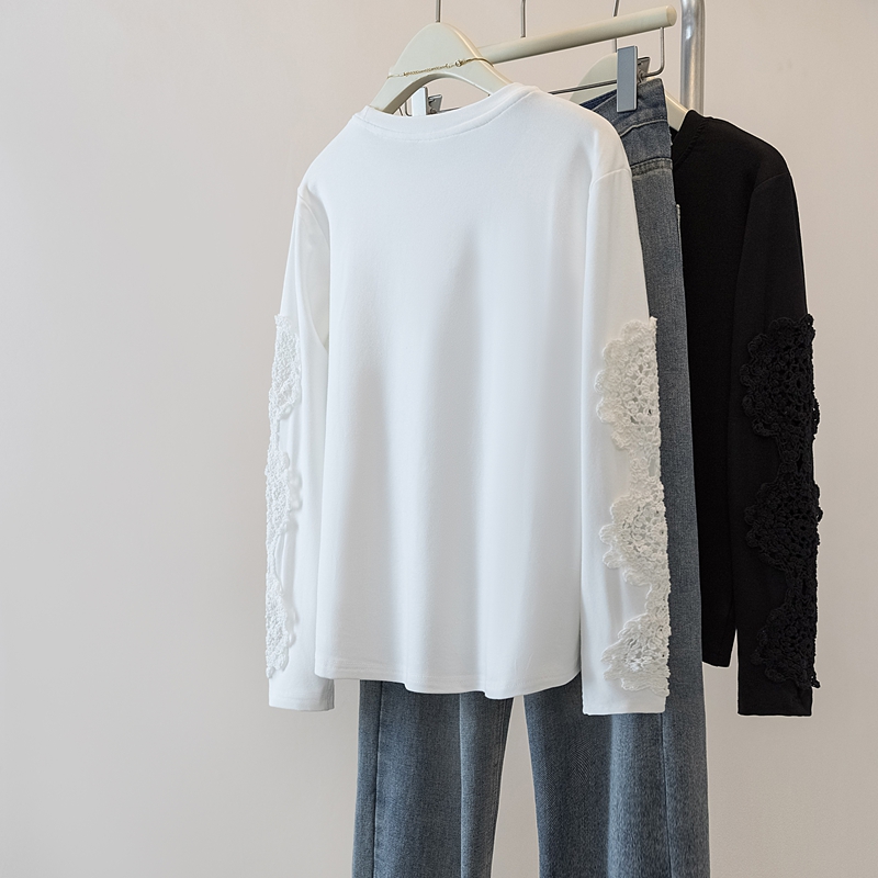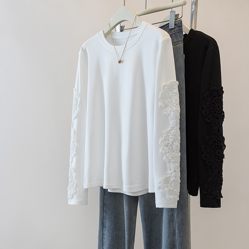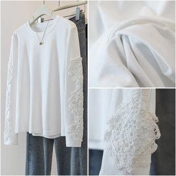 FA46982# 胖mm拼接高级感重工提花长袖T恤内搭显瘦遮肉宽松打底上衣 服裝批發女裝批發服飾貨源