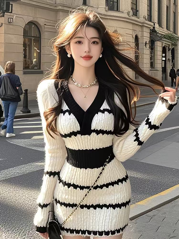 FA47057# 秋季女装毛衣裙子新款修身显瘦内搭打底包臀针织连衣裙女秋冬 服裝批發女裝批發服飾貨源