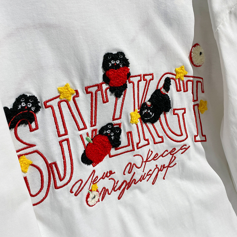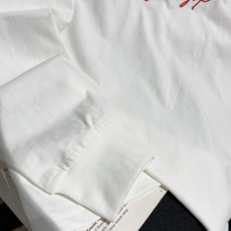 FA47080# 纯棉长袖t恤打底衫男女薄款潮秋刺绣花中长宽松圆领上衣 服裝批發女裝批發服飾貨源