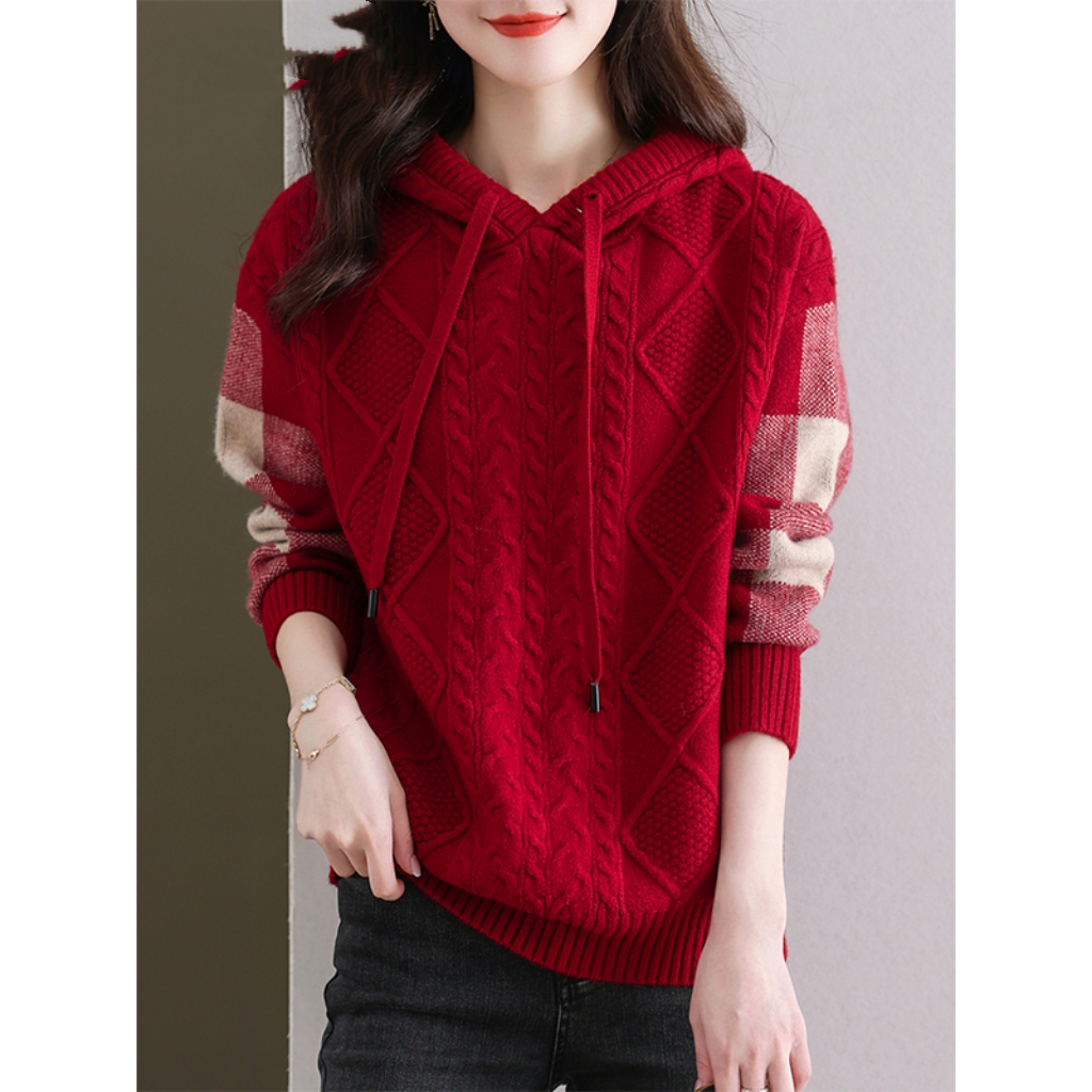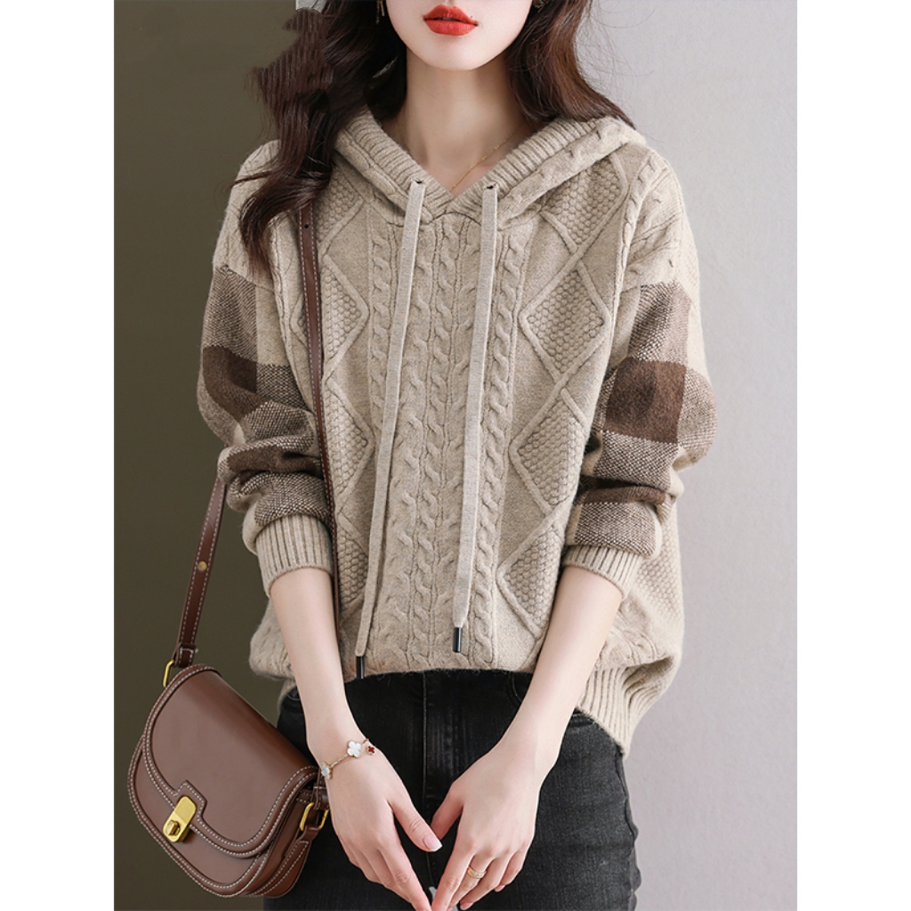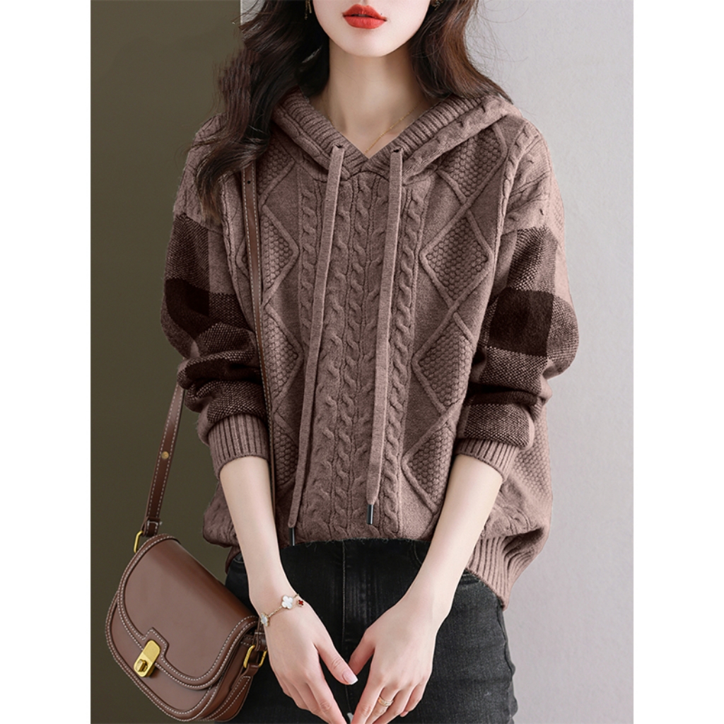 FA47085# 新款春秋冬连帽针织衫卫衣女高级感气质宽松显瘦外穿带帽毛衣 服裝批發女裝批發服飾貨源