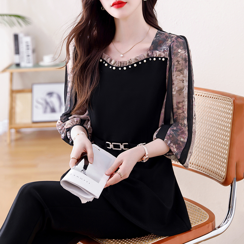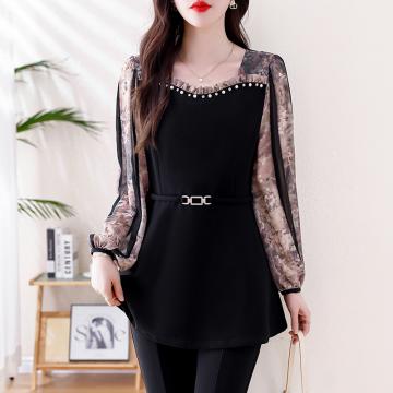 Home > 长袖雪纺衫、衬衫、上衣 > FA47091# 春雪纺拼接轻奢高档订珠休闲气质时髦宽松显瘦百搭衬衫上衣潮 服裝批發女裝批發服飾貨源