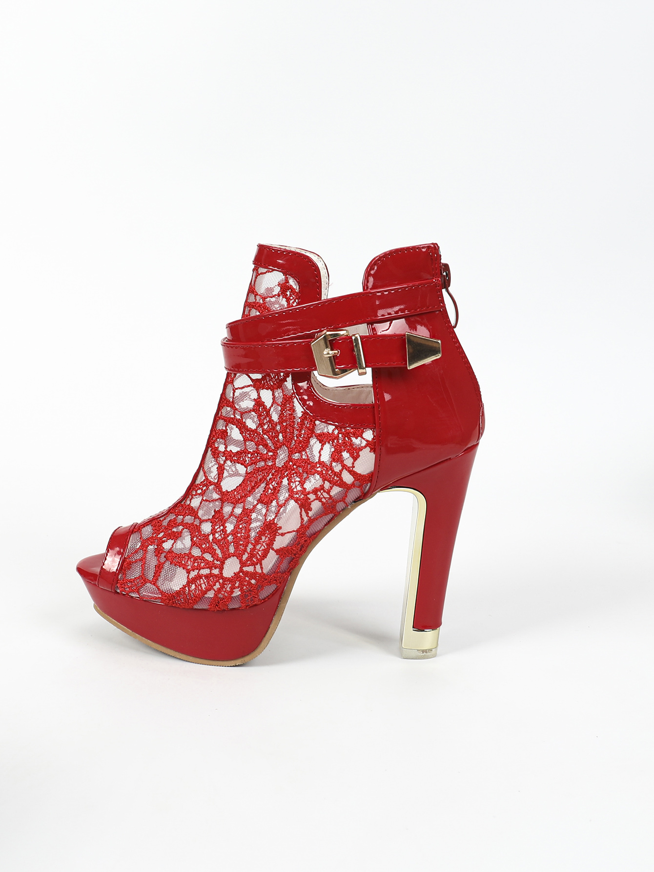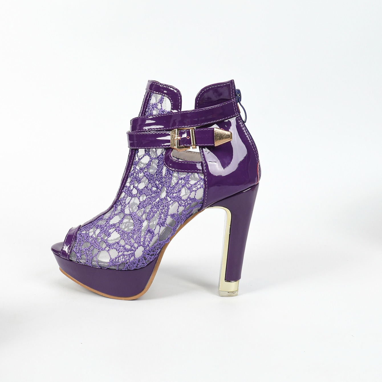X-32837# 秋季新款欧美风格蕾丝网压花防水台时尚性感鱼嘴短靴 鞋子批发女鞋批发货源