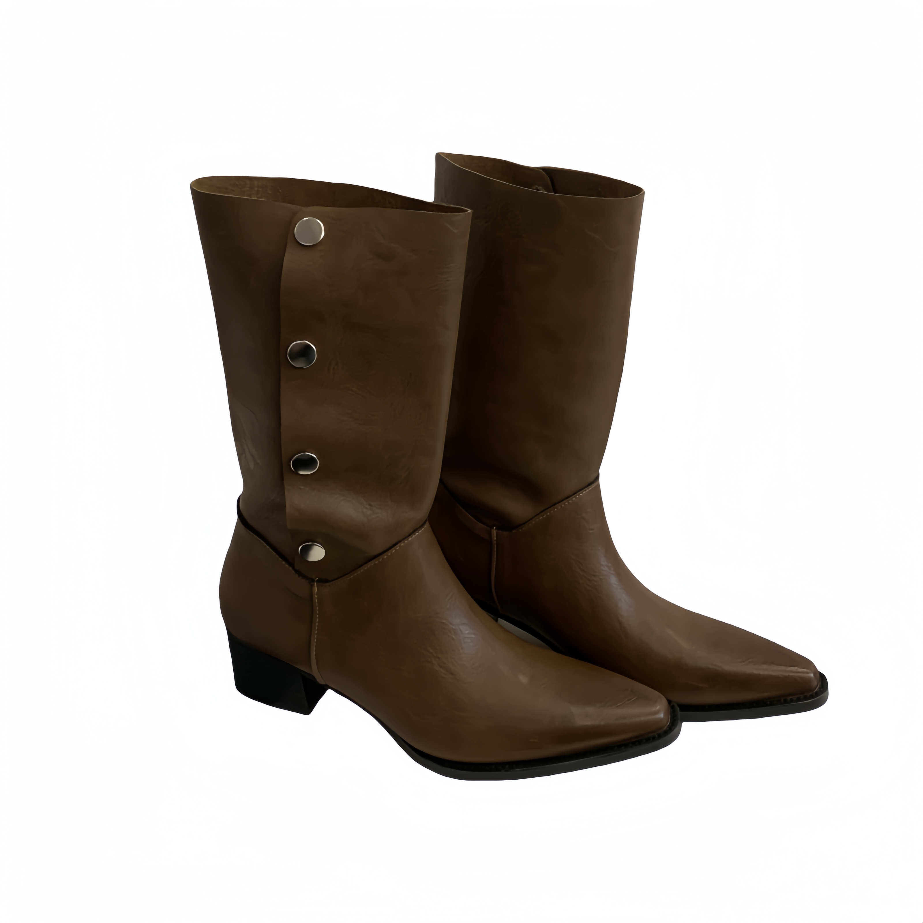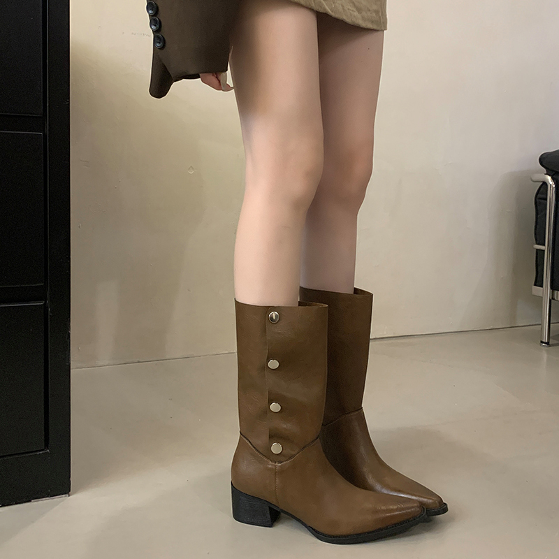 X-32876# 欧美凤舒适粗跟西部靴时尚两穿尖头高跟短靴小众简约气质套筒靴子 鞋子批发女鞋批发货源