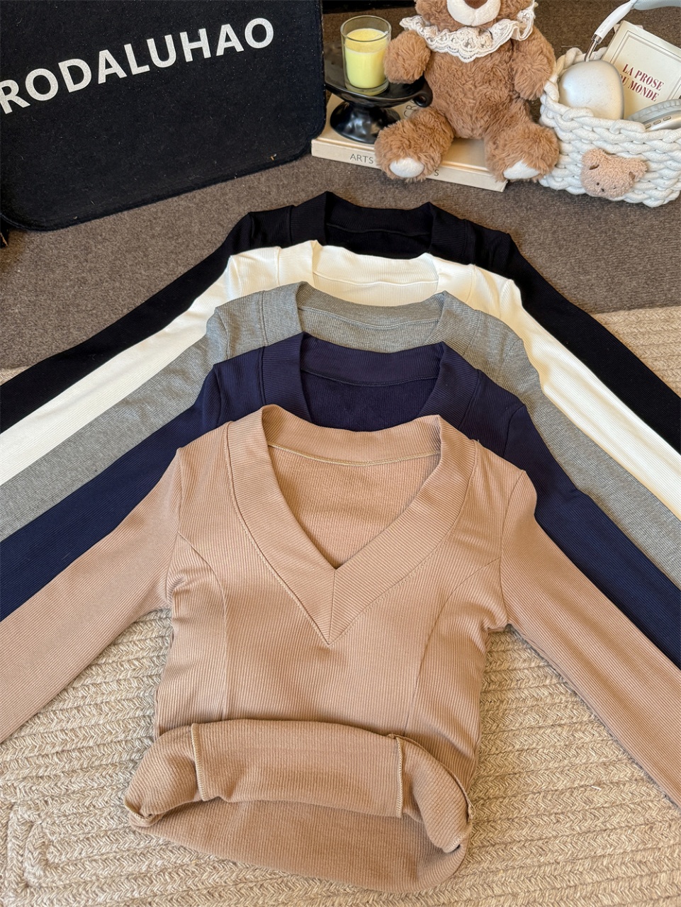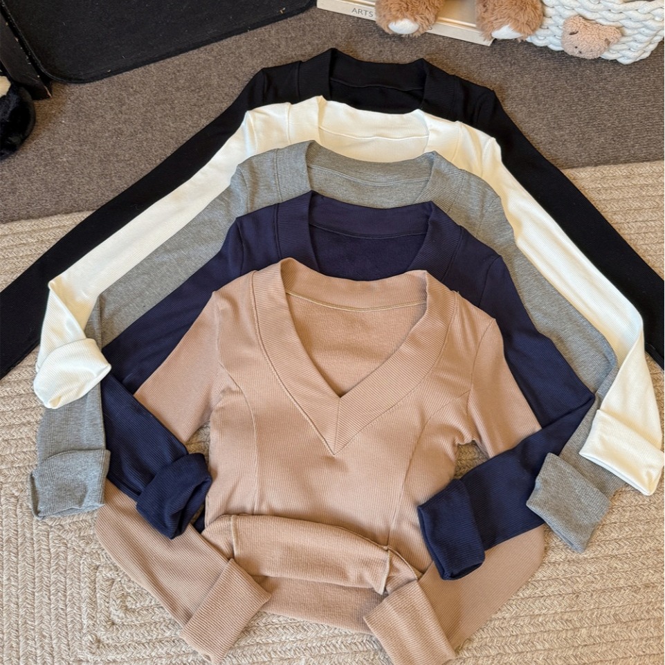 Home > 长袖T恤 > FA47146# 性感V领加绒长袖女秋冬内搭保暖修身打底上衣 服裝批發女裝批發服飾貨源