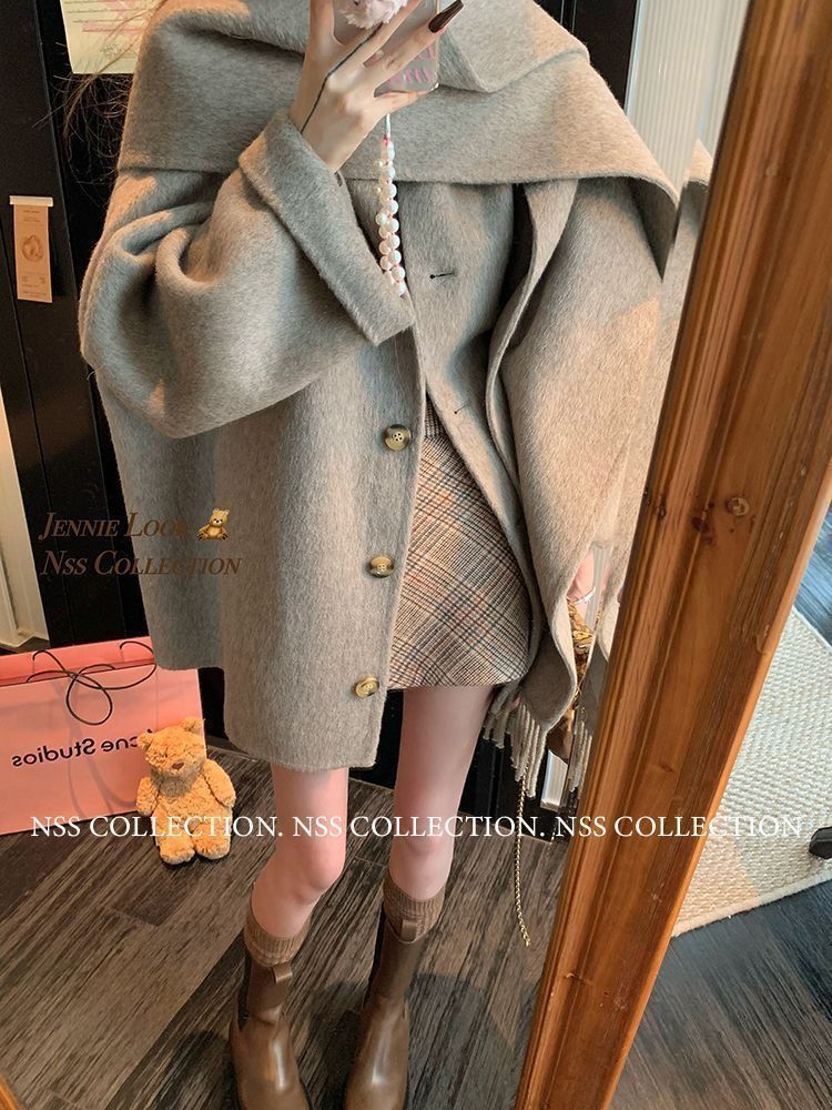 FA47270# 法式高级感赫本风秋冬季美拉德穿搭围巾毛呢外套潮 服裝批發女裝批發服飾貨源