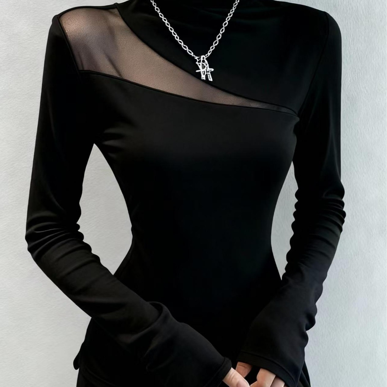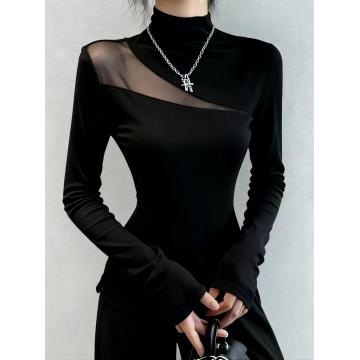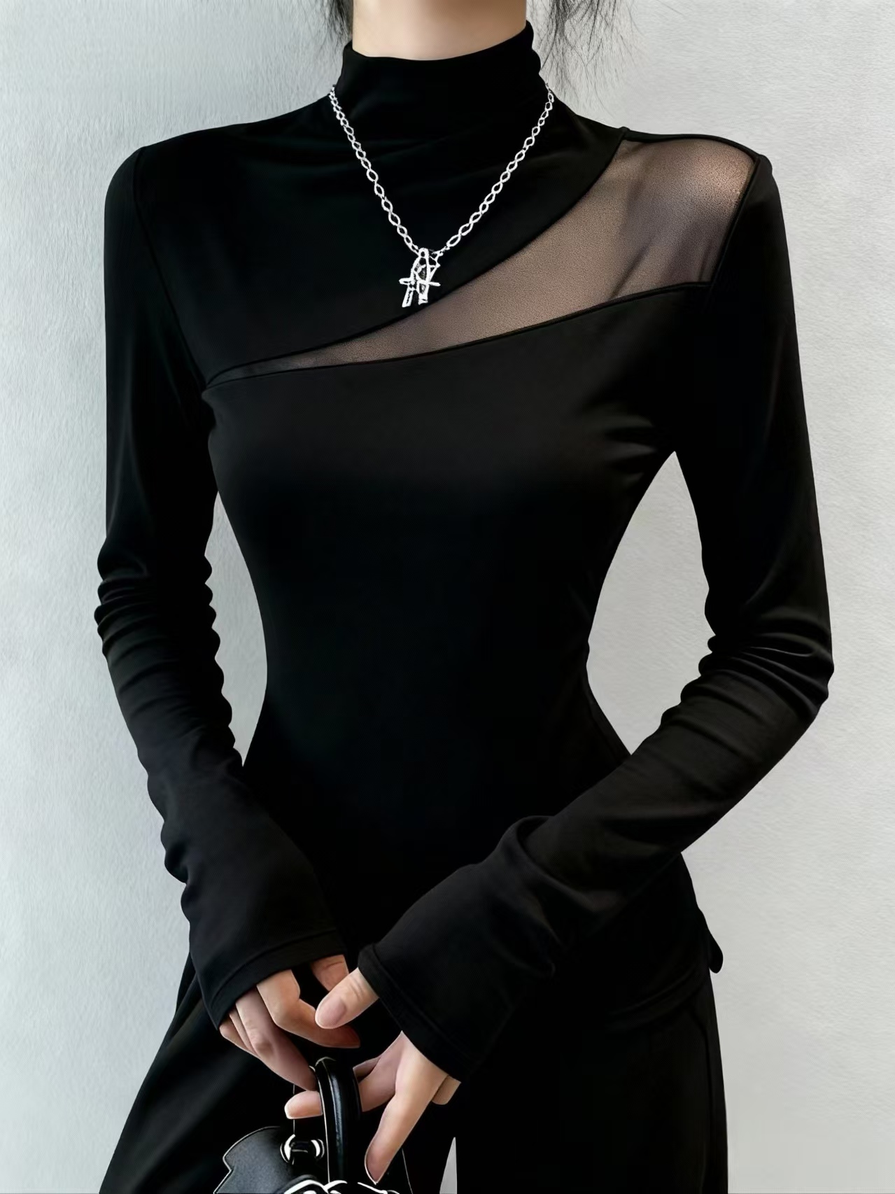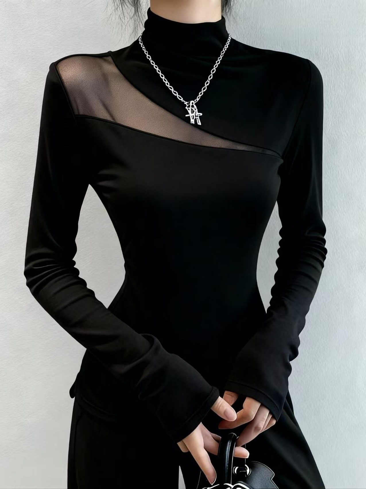 FA47296# 秋冬v领修身显瘦半高领磨毛丝绒打底衫女内搭设计感小众长袖上衣 服裝批發女裝批發服飾貨源