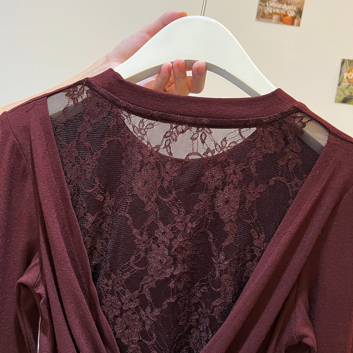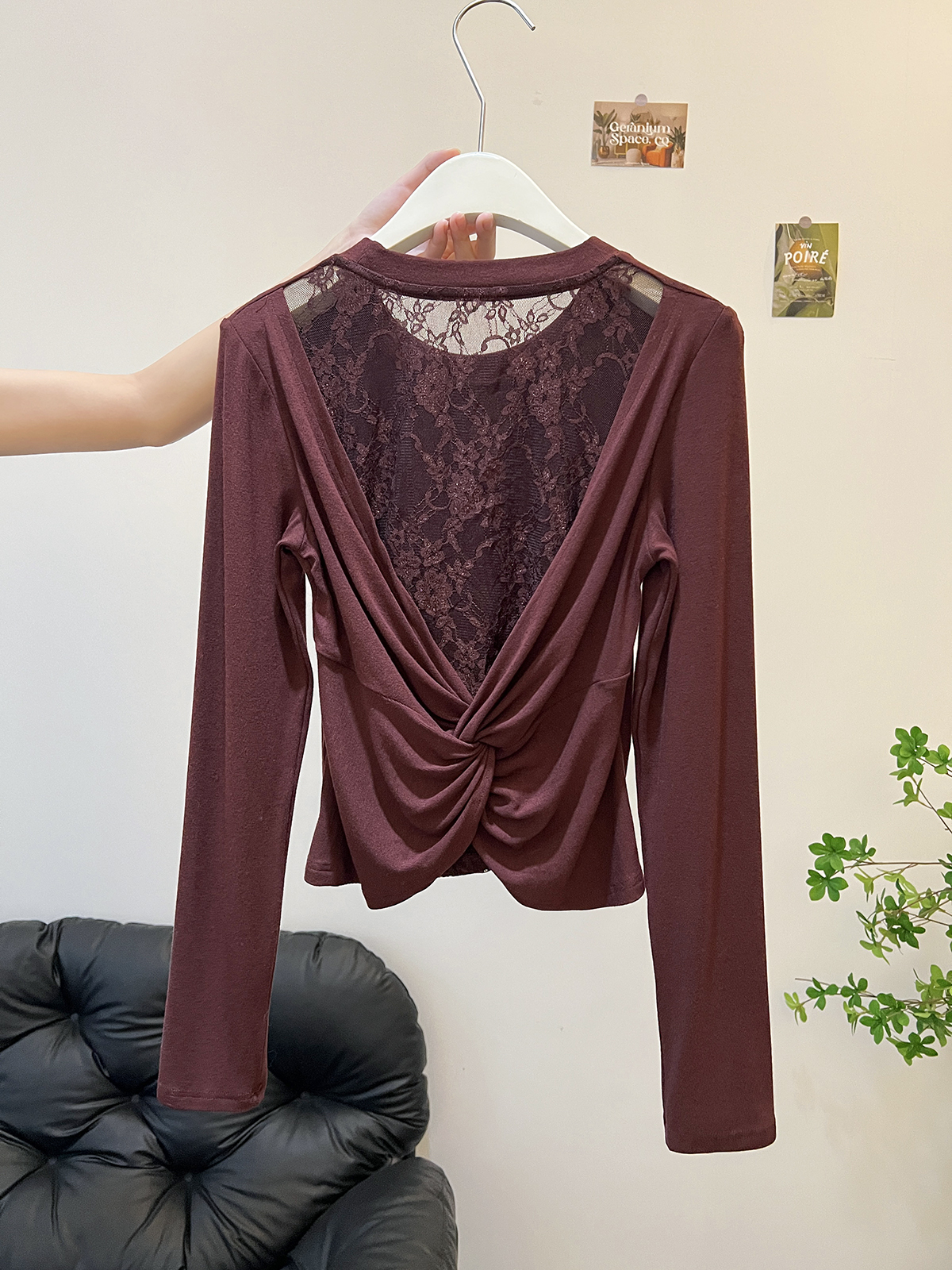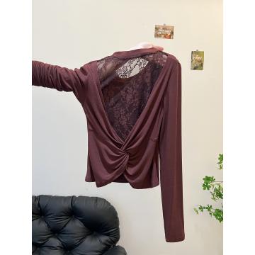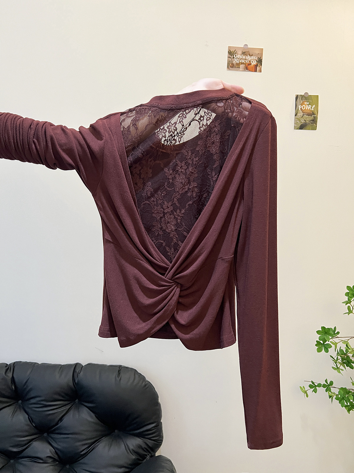 FA47330# 早秋新款爆款巨好看小众不撞款绝美韩系漂亮气质咖色露背上衣 服裝批發女裝批發服飾貨源