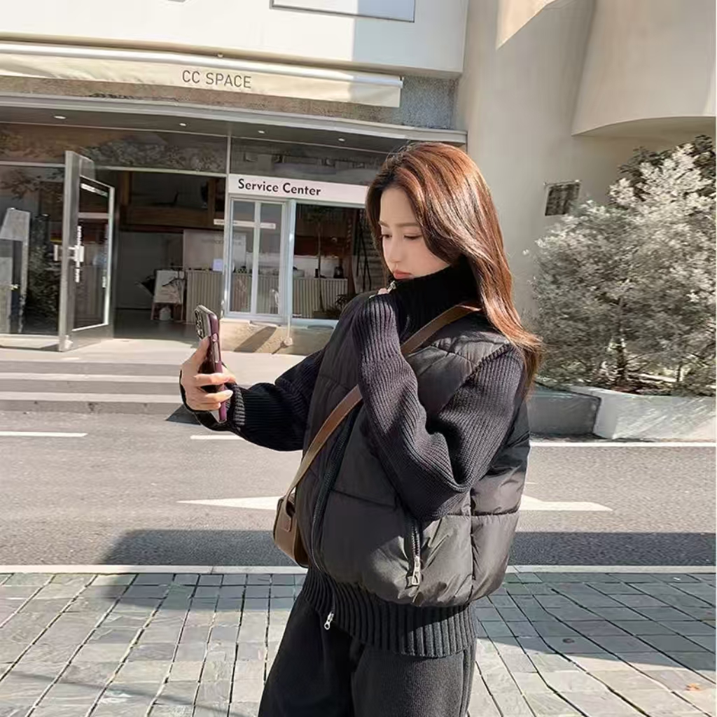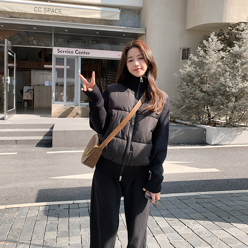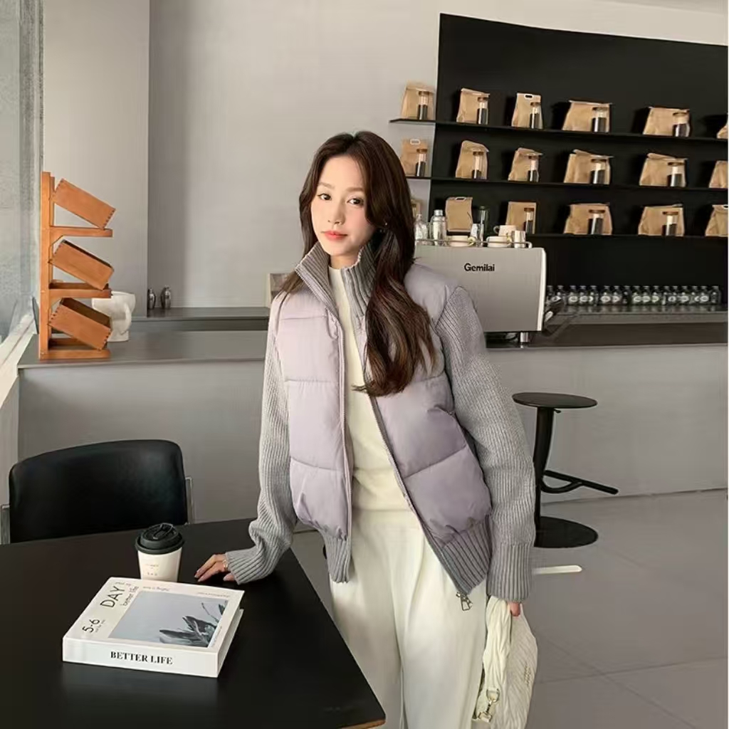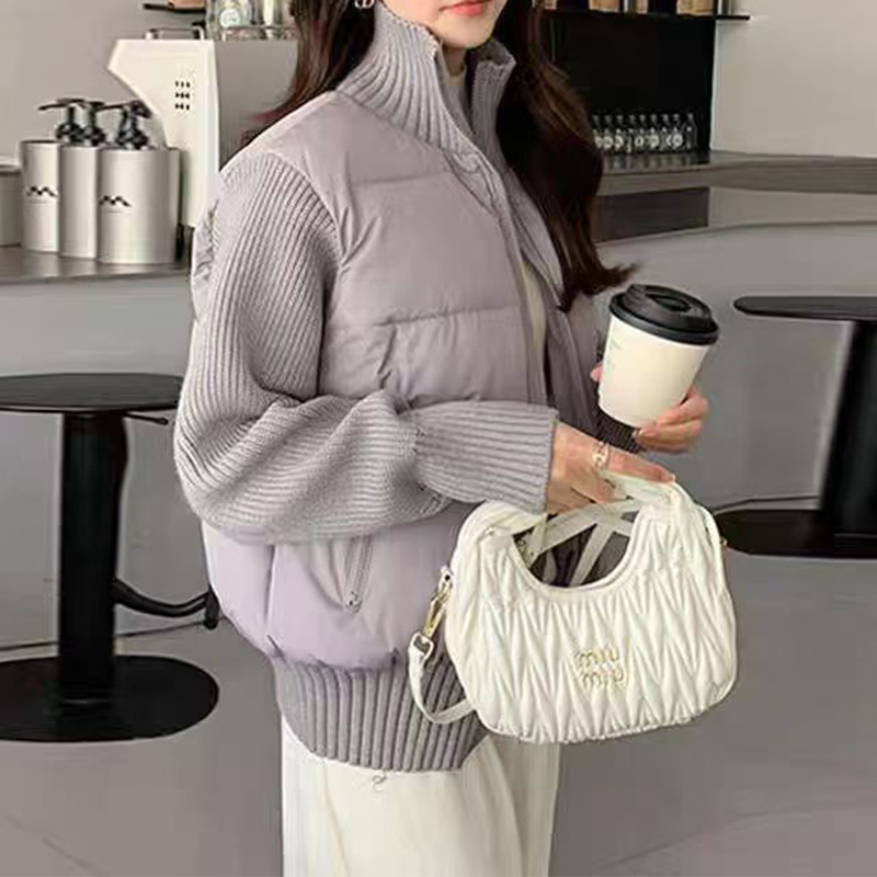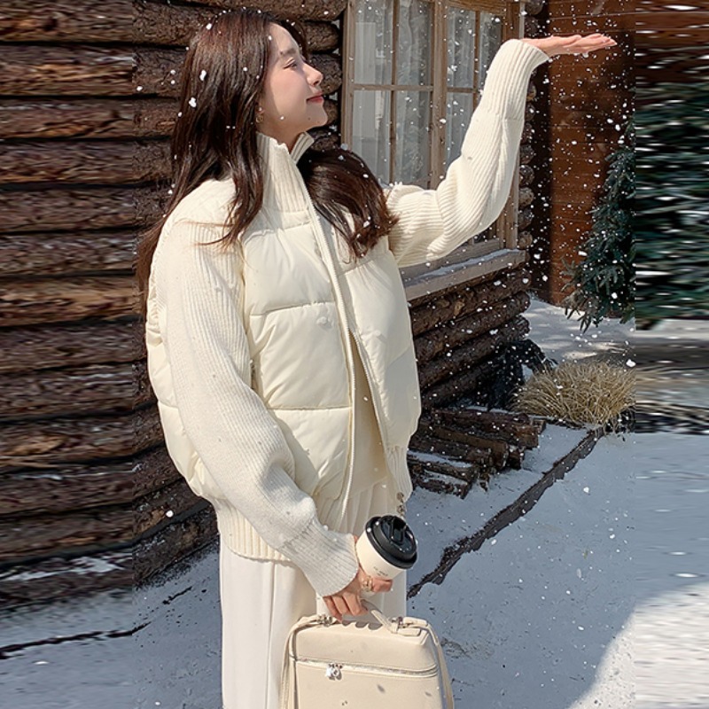 Home > 大衣、棉衣、羽绒服外套 > LN76375# 羊毛拼接秋冬新款法式气质设计感小众短款白色羽绒服保暖外套