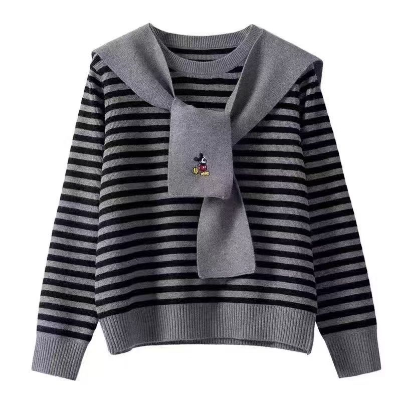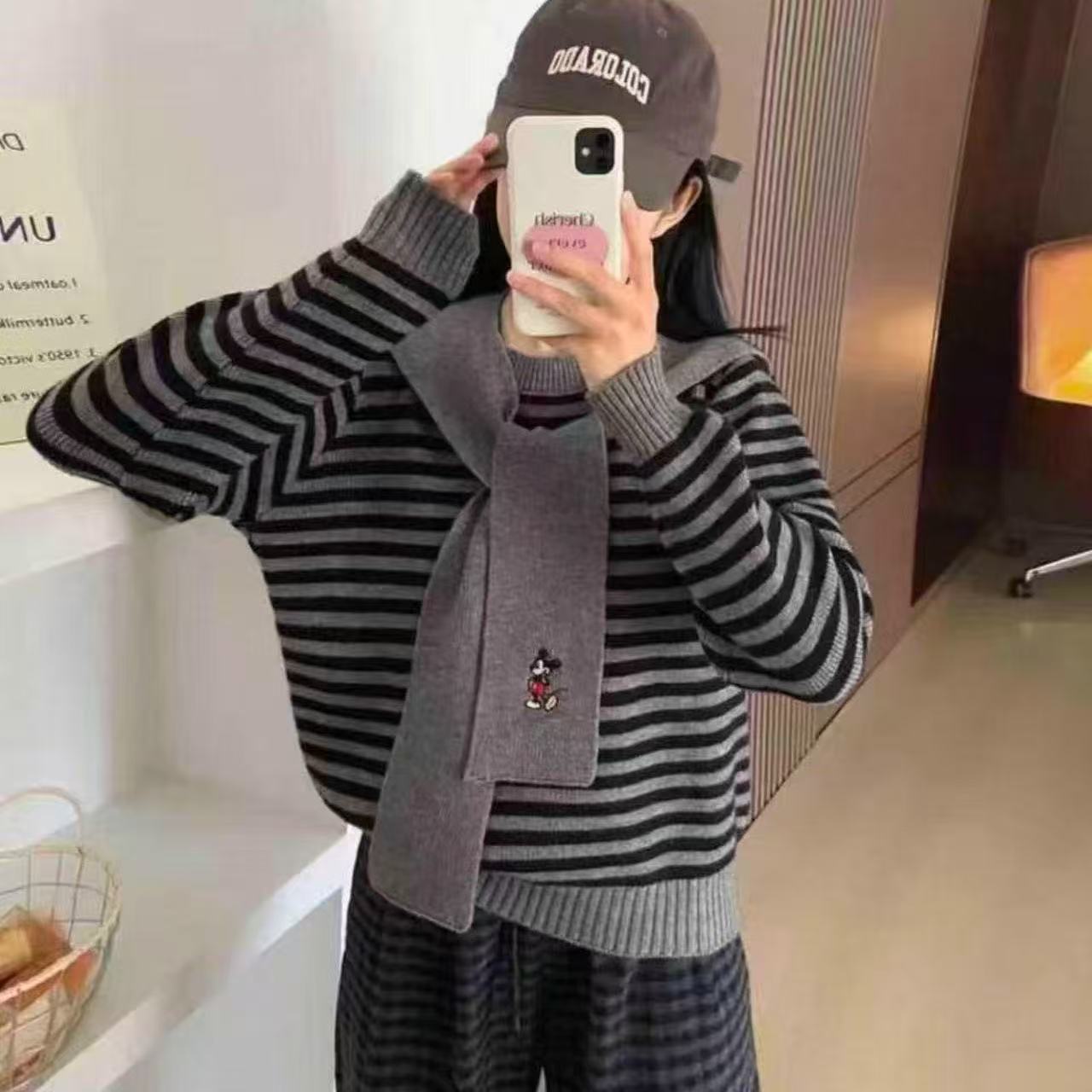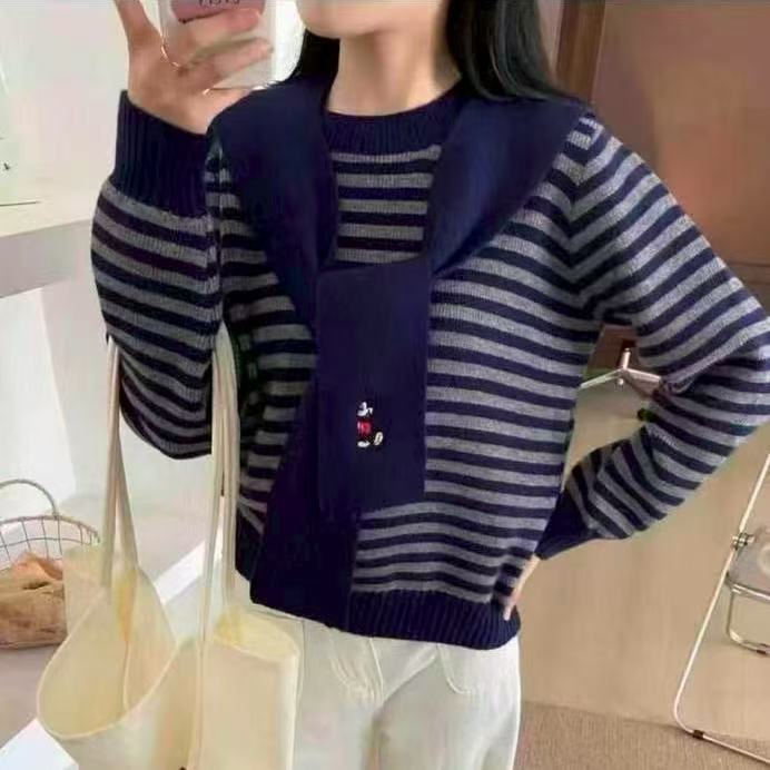 Home > 毛衣、针织衫 > LN76376# 秋冬新款设计披肩针织毛衣两件套长袖针织衫宽松条纹时尚上衣