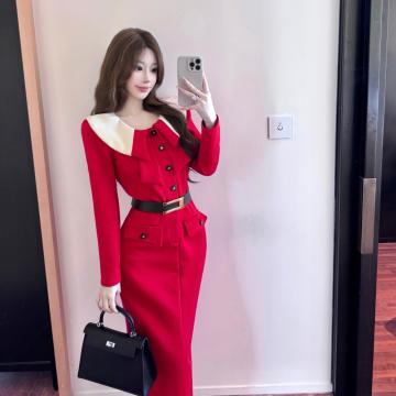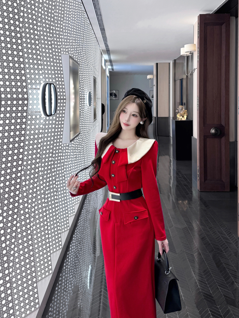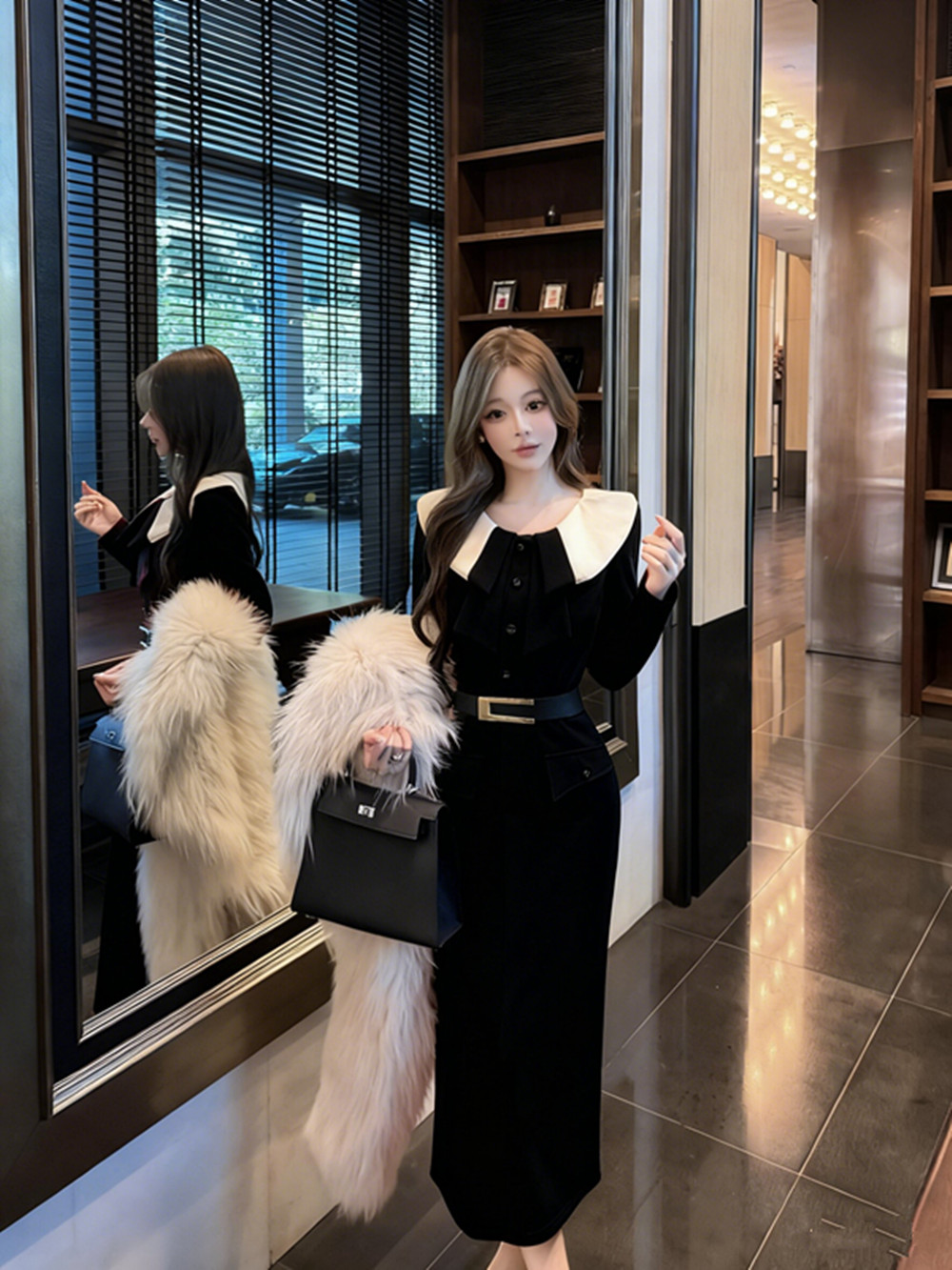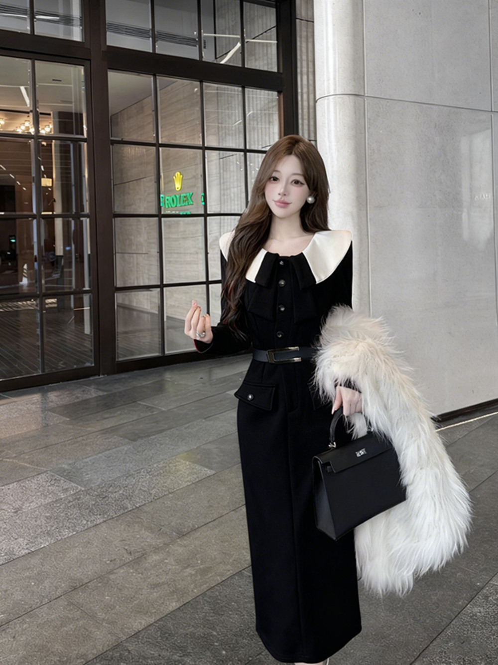 Home > 夜店裙、长袖连衣裙 > FA48367# 名媛气质秋冬设计感娃娃领拼接收腰时尚洋气中长款显瘦连衣裙 服裝批發女裝批發服飾貨源