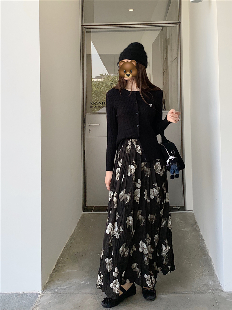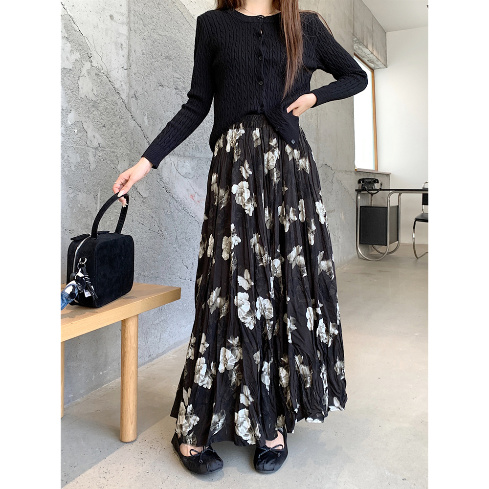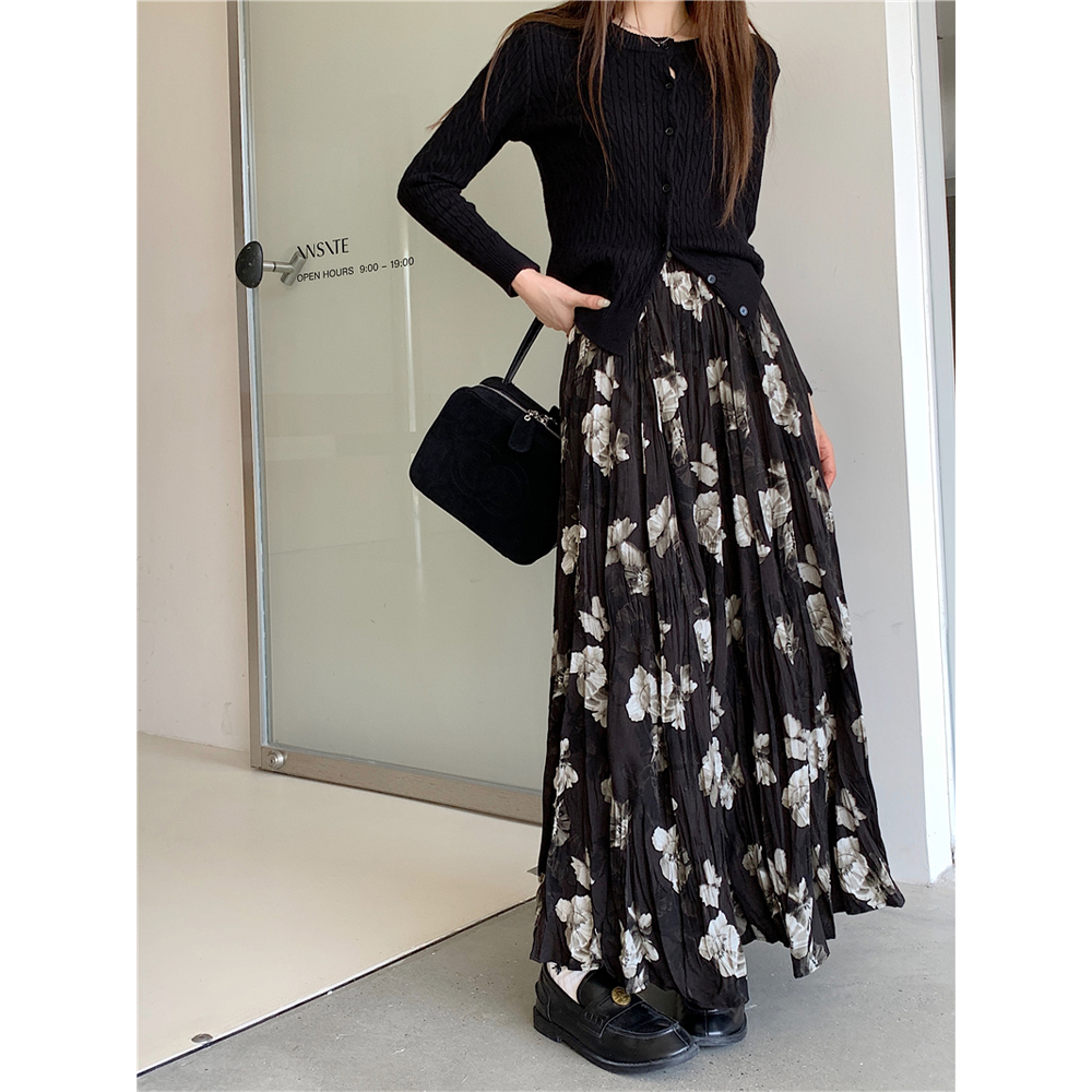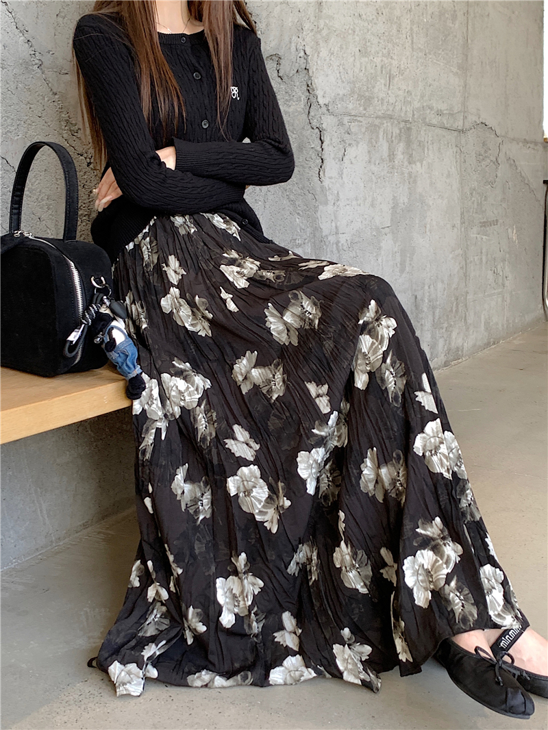FA48568# 大码美拉德复古百搭花朵碎花裙中长款半身裙女 服裝批發女裝批發服飾貨源