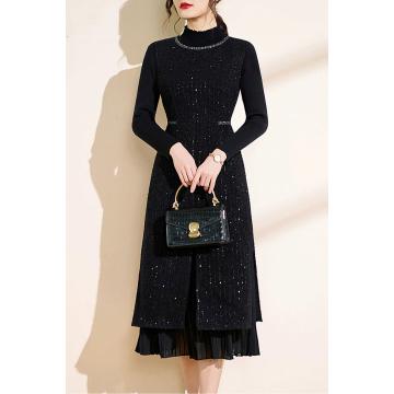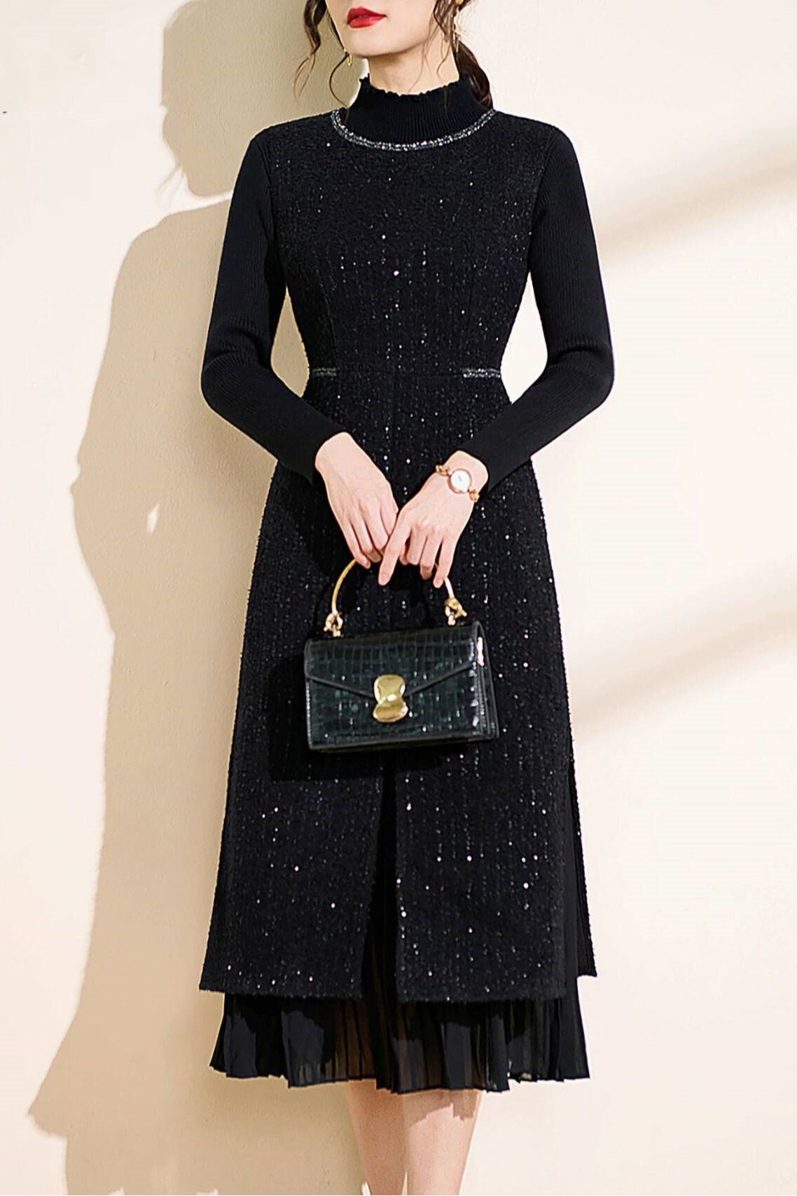 FA48573# 黑色小香风背心连衣裙女新春秋圆领背带马甲毛呢裙加毛衣套装 服裝批發女裝批發服飾貨源