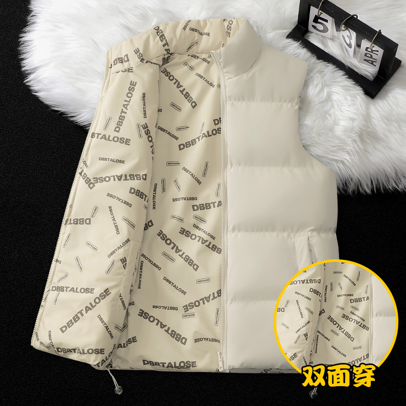 FA48642# 双面穿马甲男秋冬加厚羽绒棉马夹外套青年情侣棉衣帅气双面穿马甲男学生潮马甲立领马甲男 男装批发