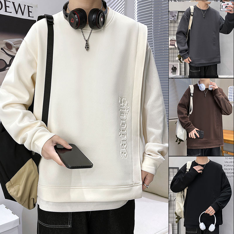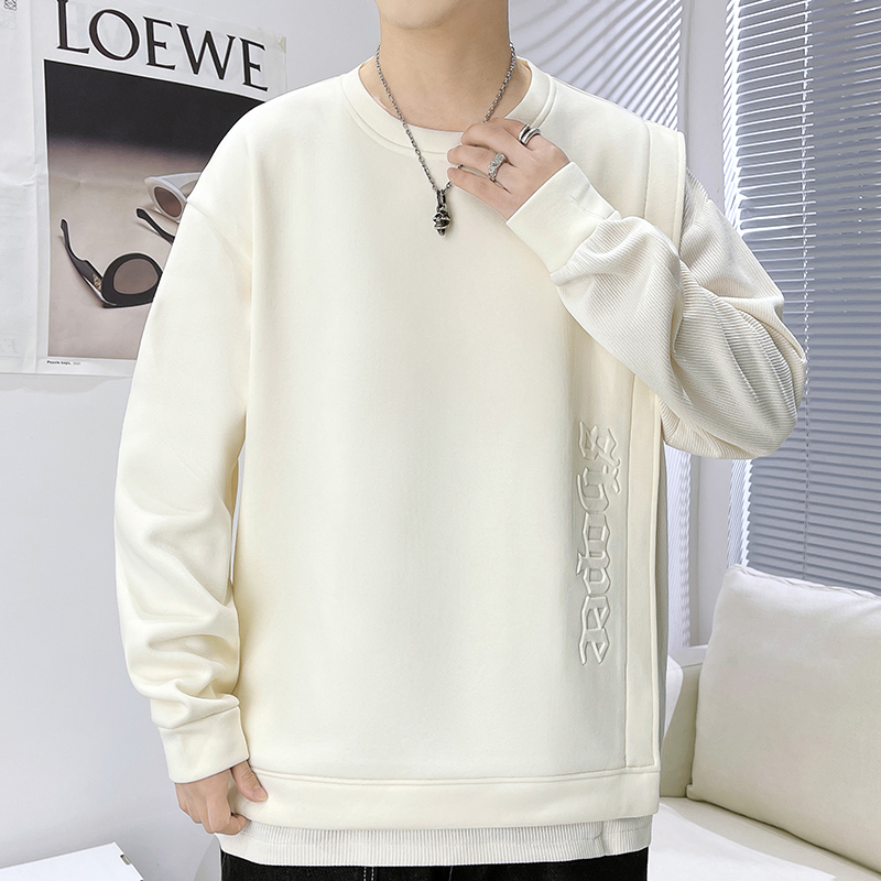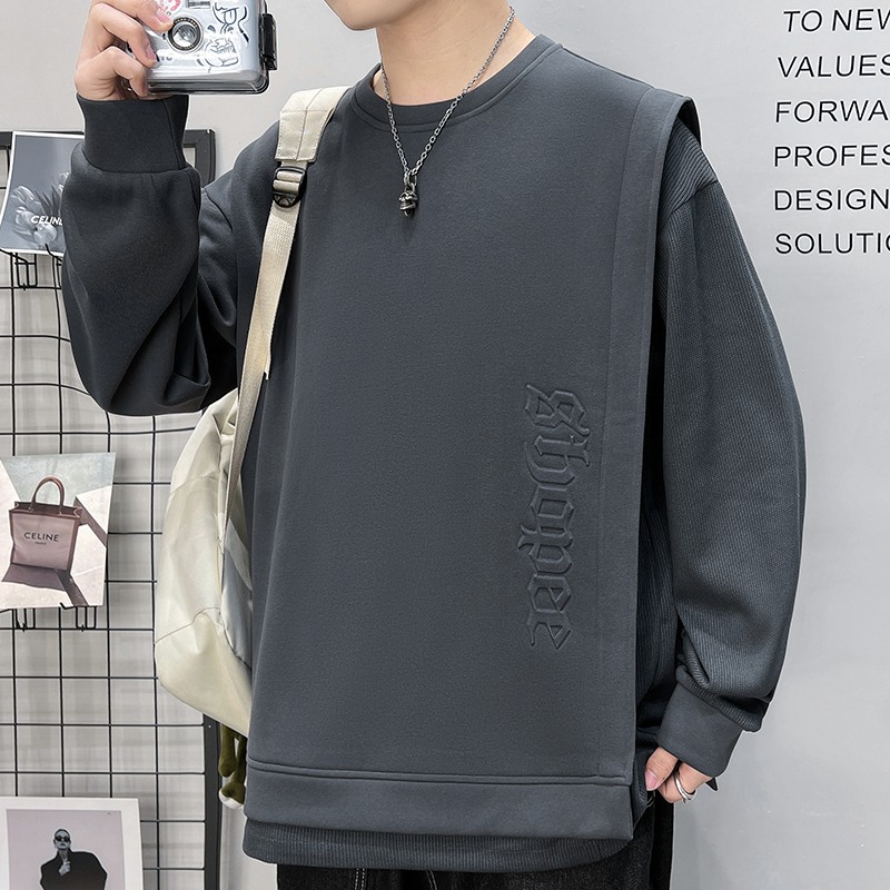秋季重磅双料拼接假两件棉质圆领卫衣男美式街头潮流设计感长袖上衣 男装批发