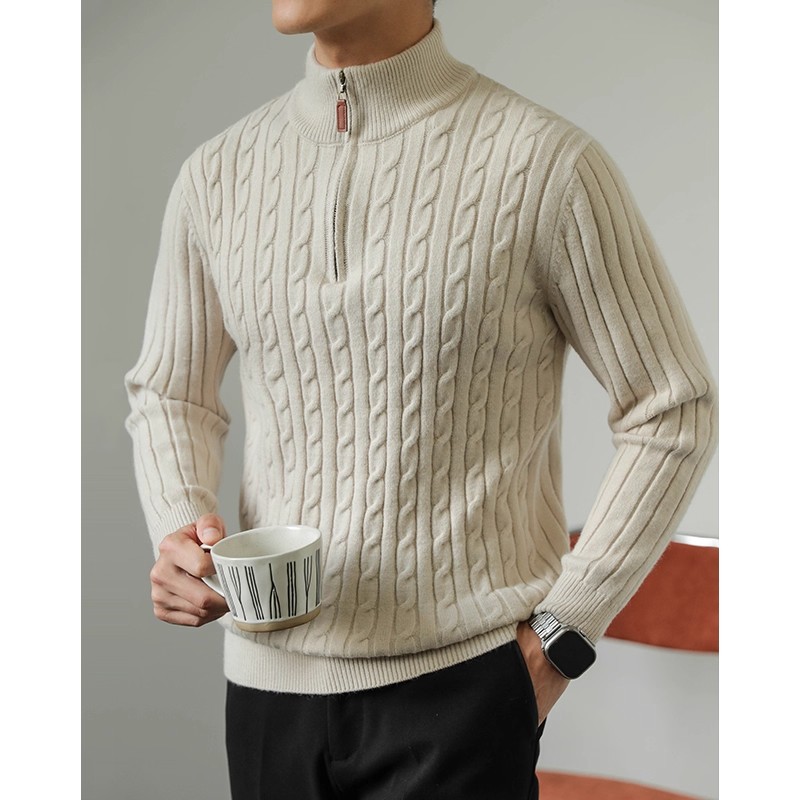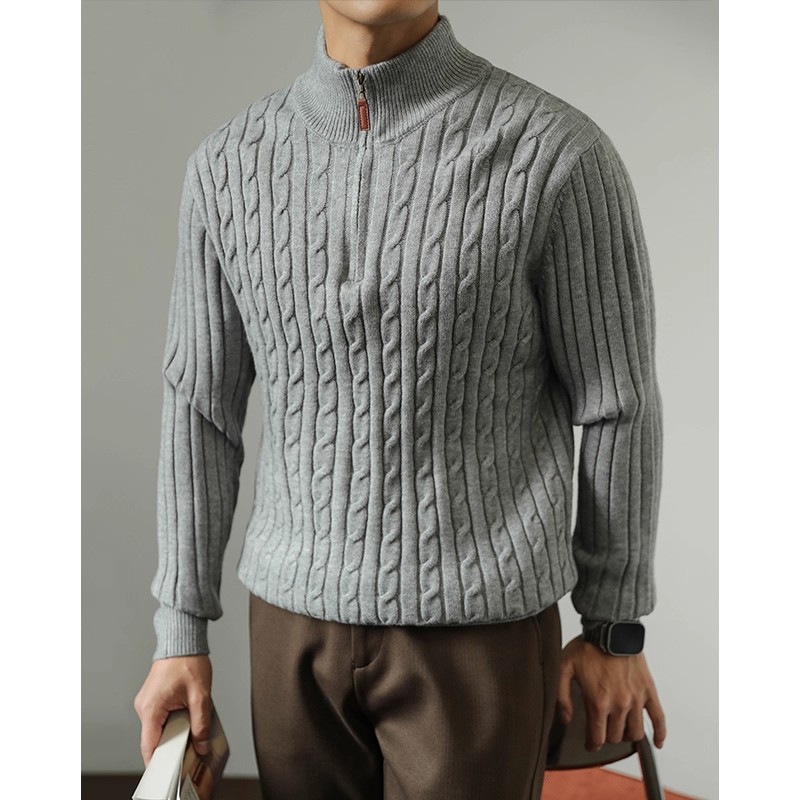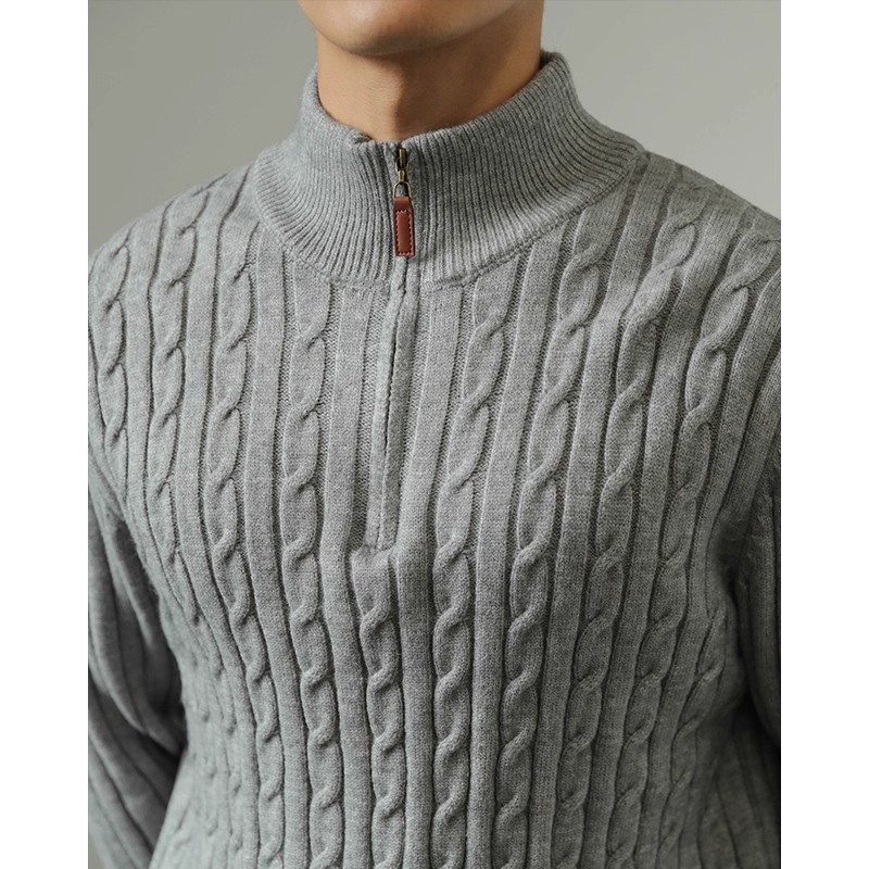 新款冬季高品质加厚保暖针织衫男士商务休闲提花半拉链套头卫衣毛衣男外套 男装批发