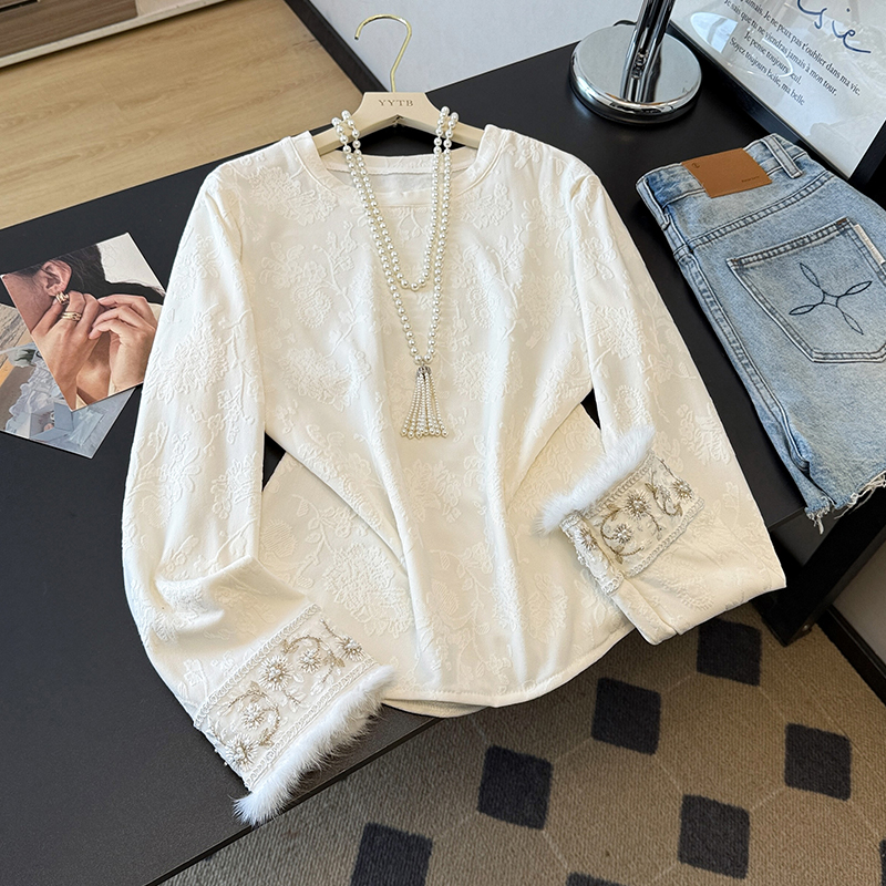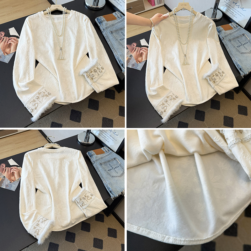 Home > 长袖T恤 > FA49230# 新中式国风打底衫秋冬季新款提花刺绣貂毛百搭显瘦长袖女上衣T恤 服裝批發女裝批發服飾貨源