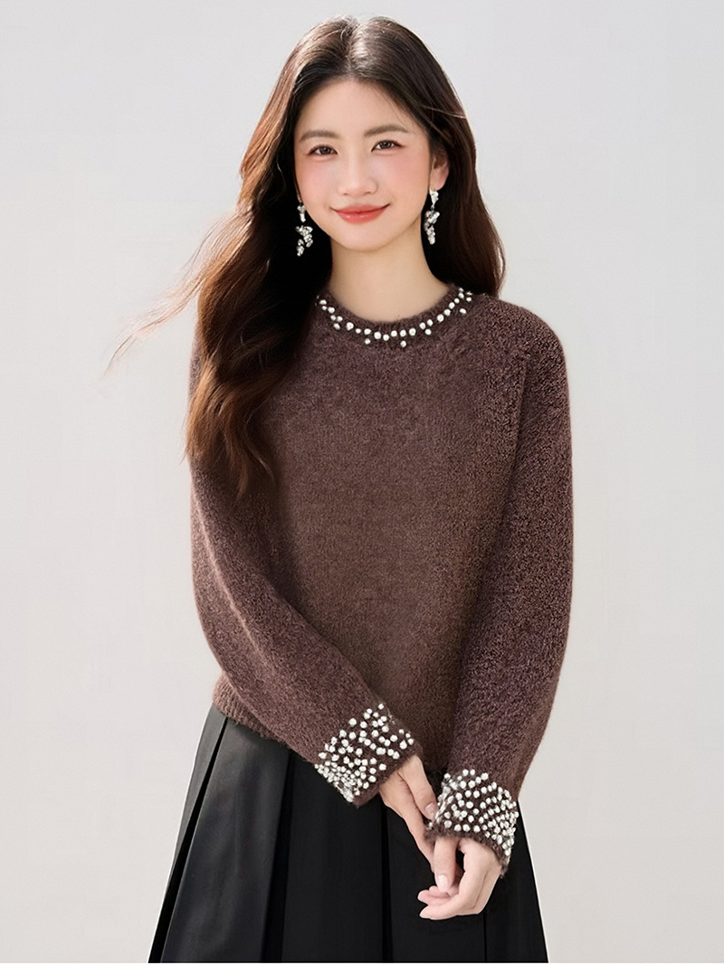 FA49246# 欧货重工钉珠针织衫女新款秋冬内搭超好看毛衣慵懒高级感冬季 服裝批發女裝批發服飾貨源