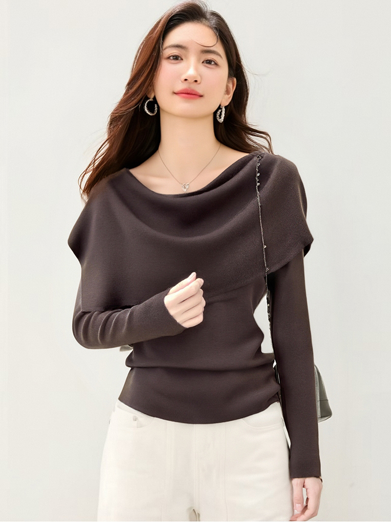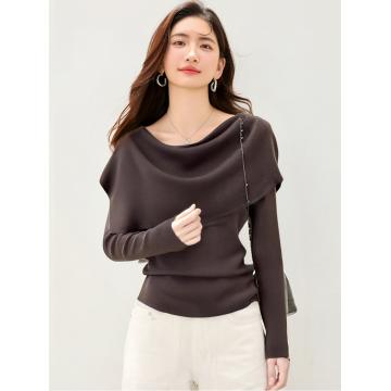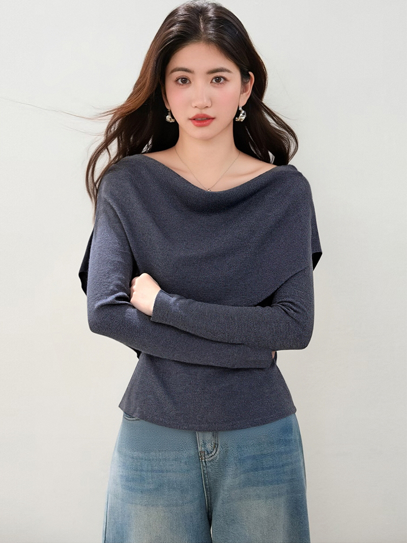 FA49247# 复古韩系v领长袖针织衫女秋季新款小众修身显瘦小衫上衣 服裝批發女裝批發服飾貨源