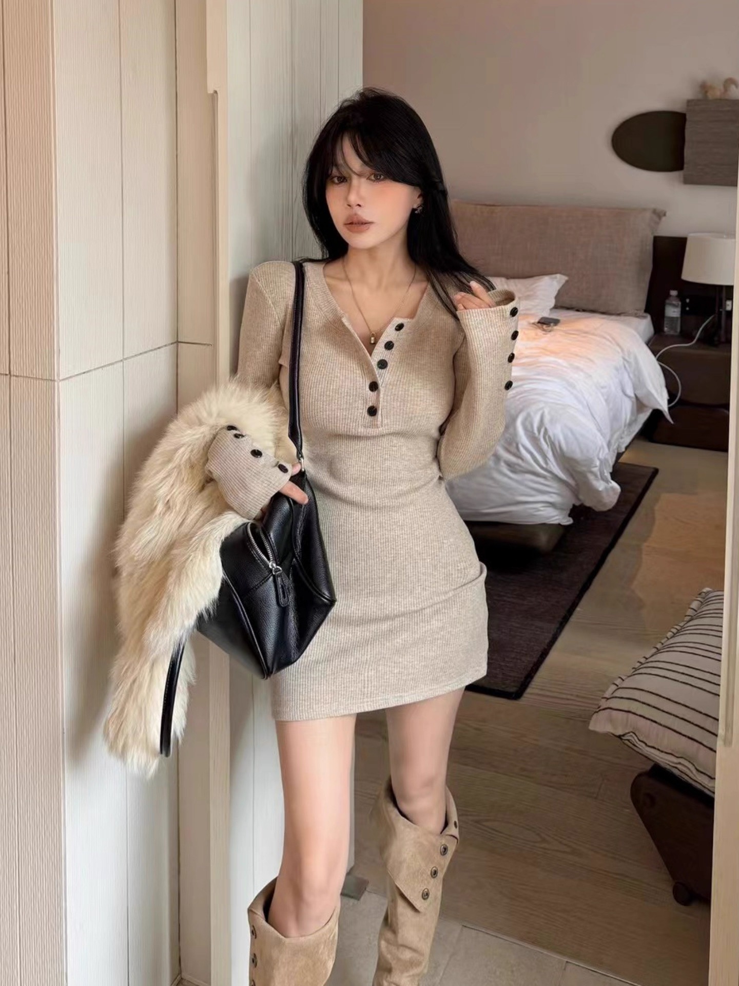 卡其色连衣裙