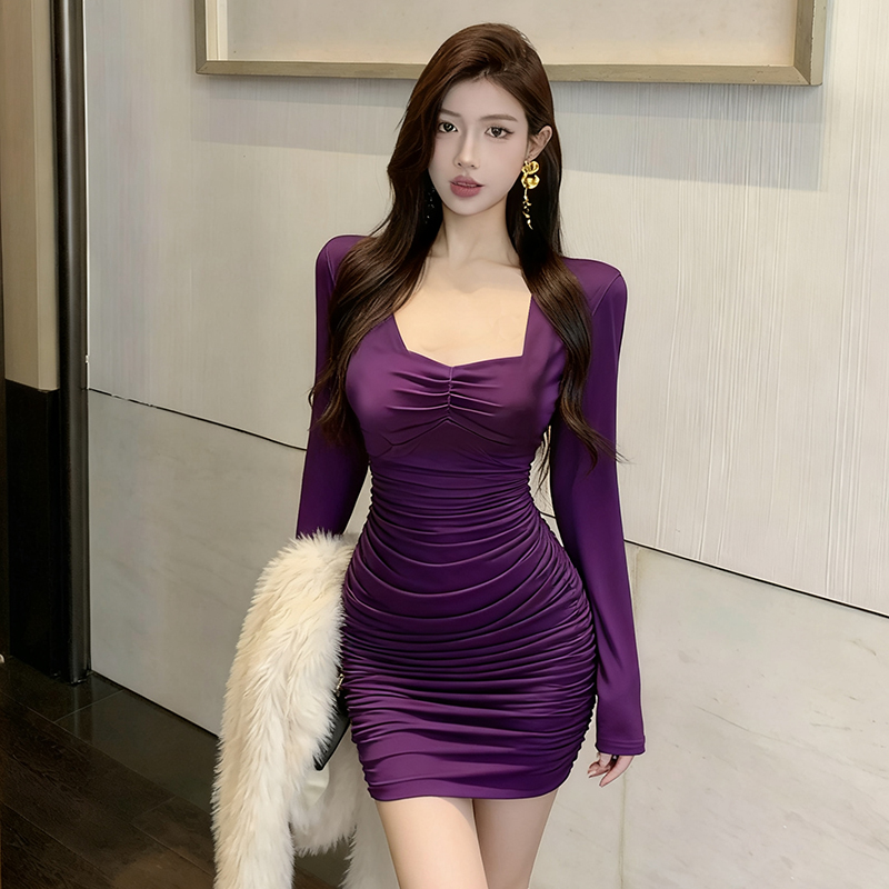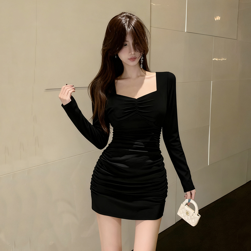 FA49559# 春秋新款气质性感显瘦包臀打底长袖加绒保暖连衣裙