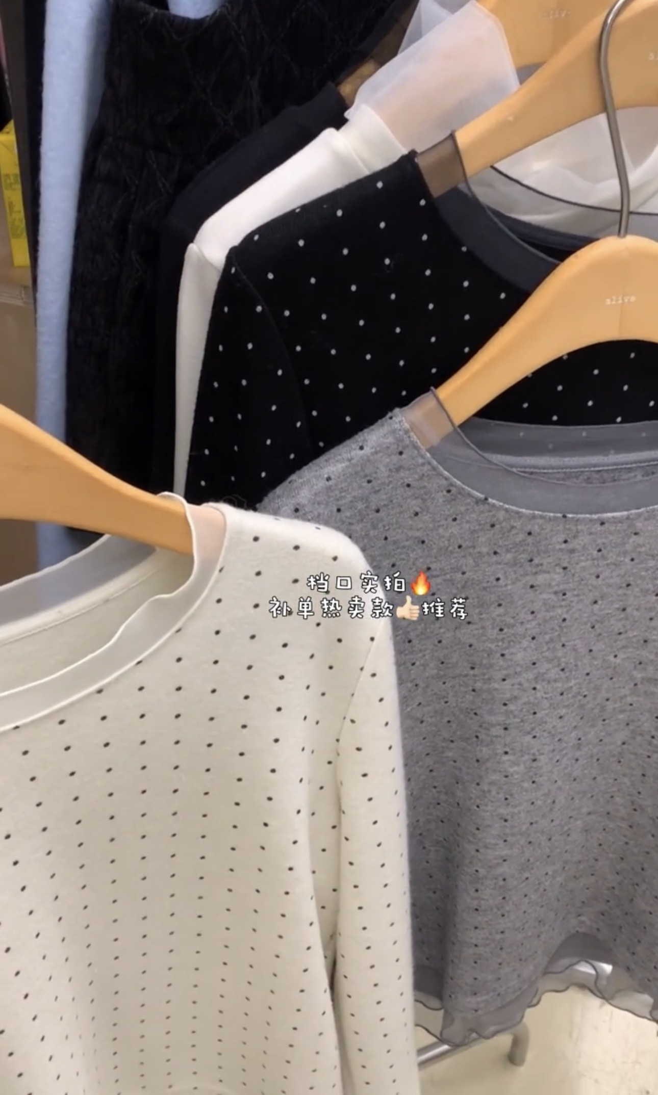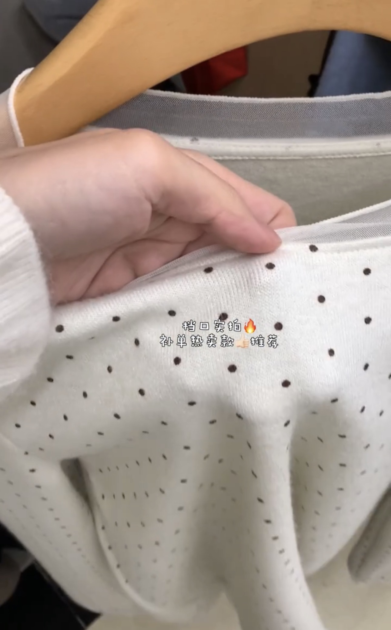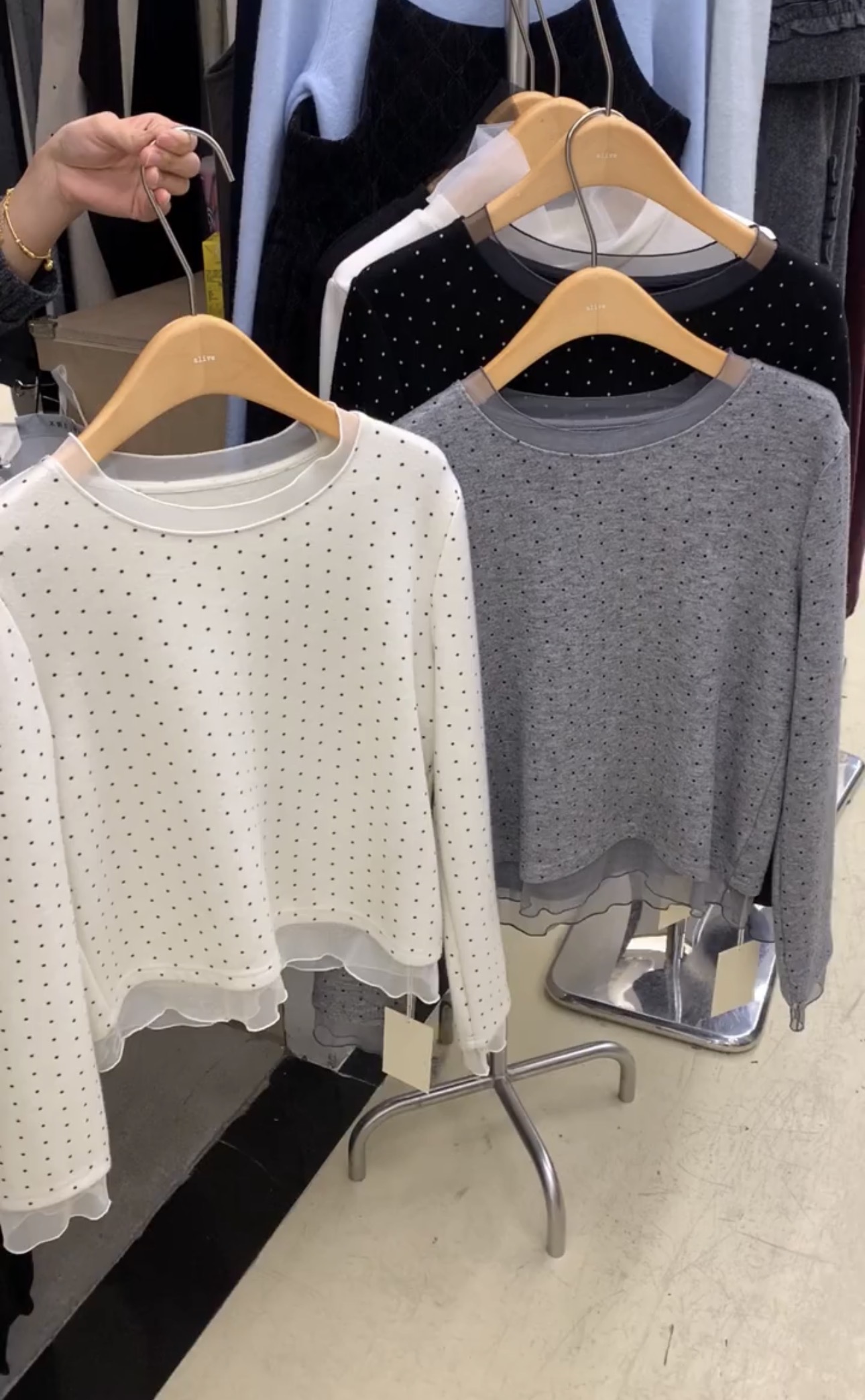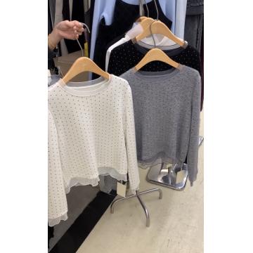FA49562# 设计感小众网纱拼接波点长袖T恤女