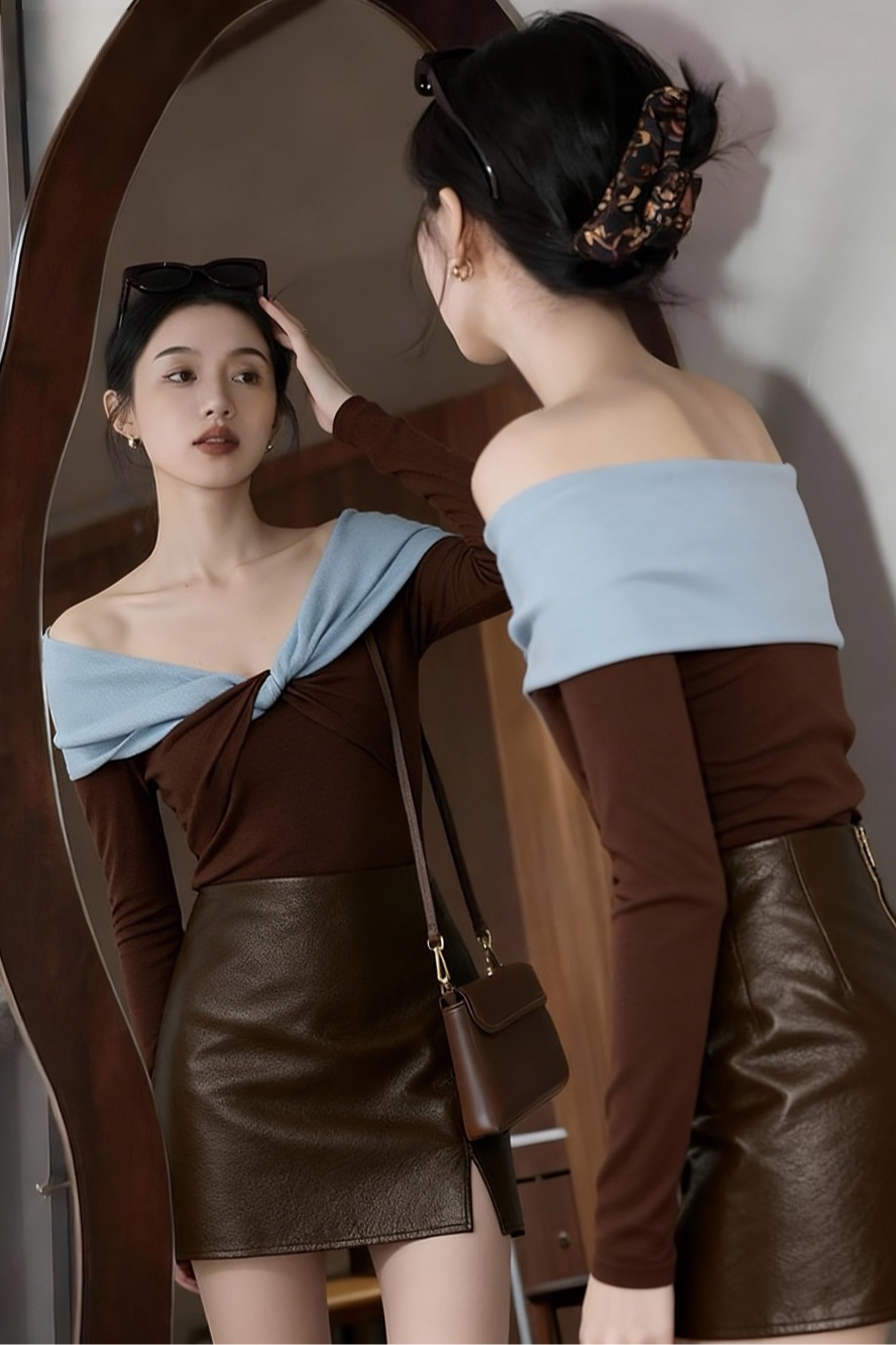 FA49576# 秋冬法式辣妹性感一字露肩锁骨针织打底衫女内搭修身显瘦上衣