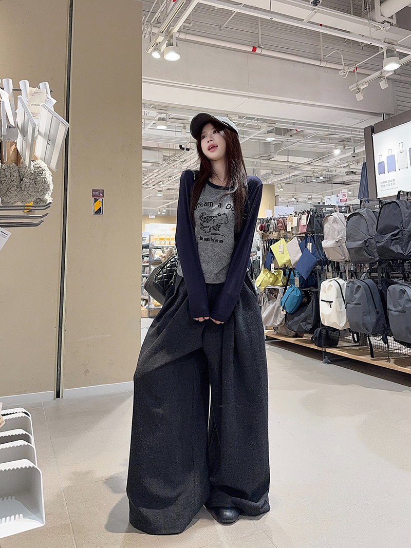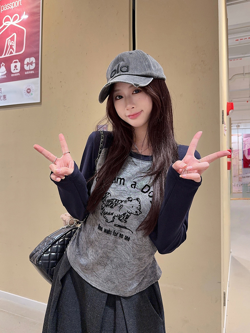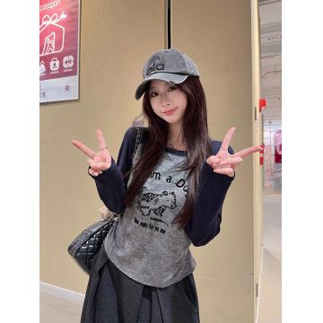 FA49655# 人棉长袖t恤打底衫女薄款秋新款短款修身插肩袖圆领上衣