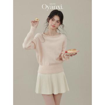 FA50168# 欧阳喜甜巧布朗尼秋冬季粉色珍珠领圆领针织衫女新款上衣 服裝批發女裝批發服飾貨源