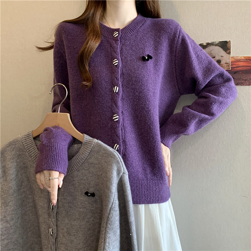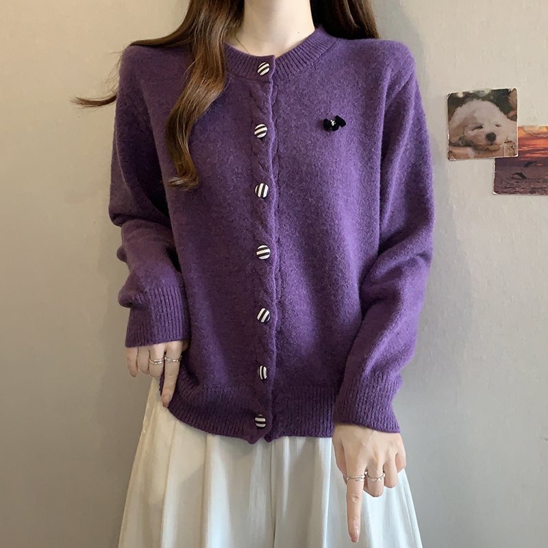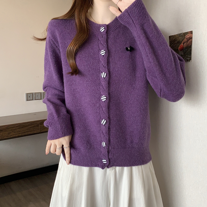Home > 毛衣、针织衫 > FA50203# 秋冬大码氛围感紫色毛衣开衫外套韩系穿搭小众气质上衣针织衫 服裝批發女裝批發服飾貨源