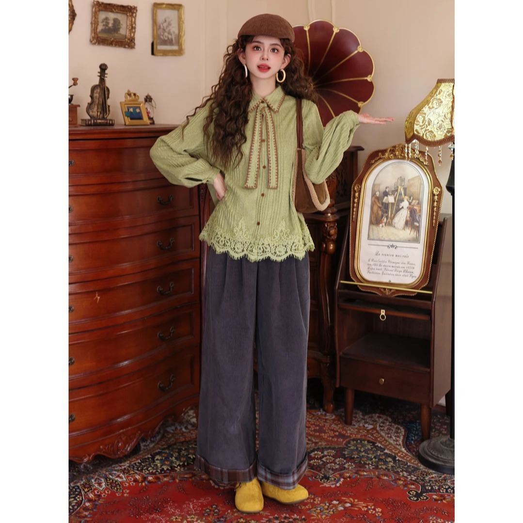 FA50230# 蒸汽绿洲复古港风毛织百搭休闲宽松衬衫上衣 服裝批發女裝批發服飾貨源