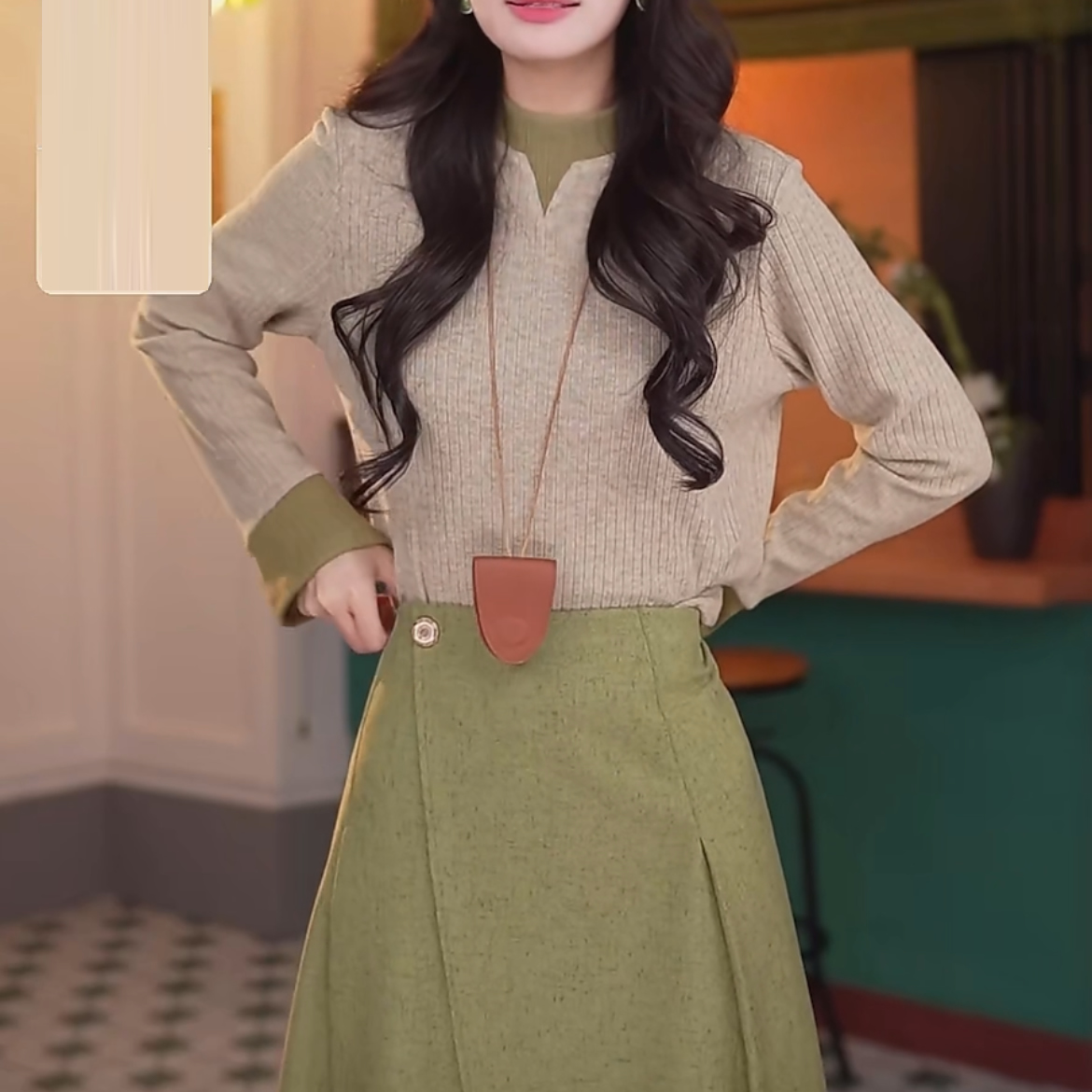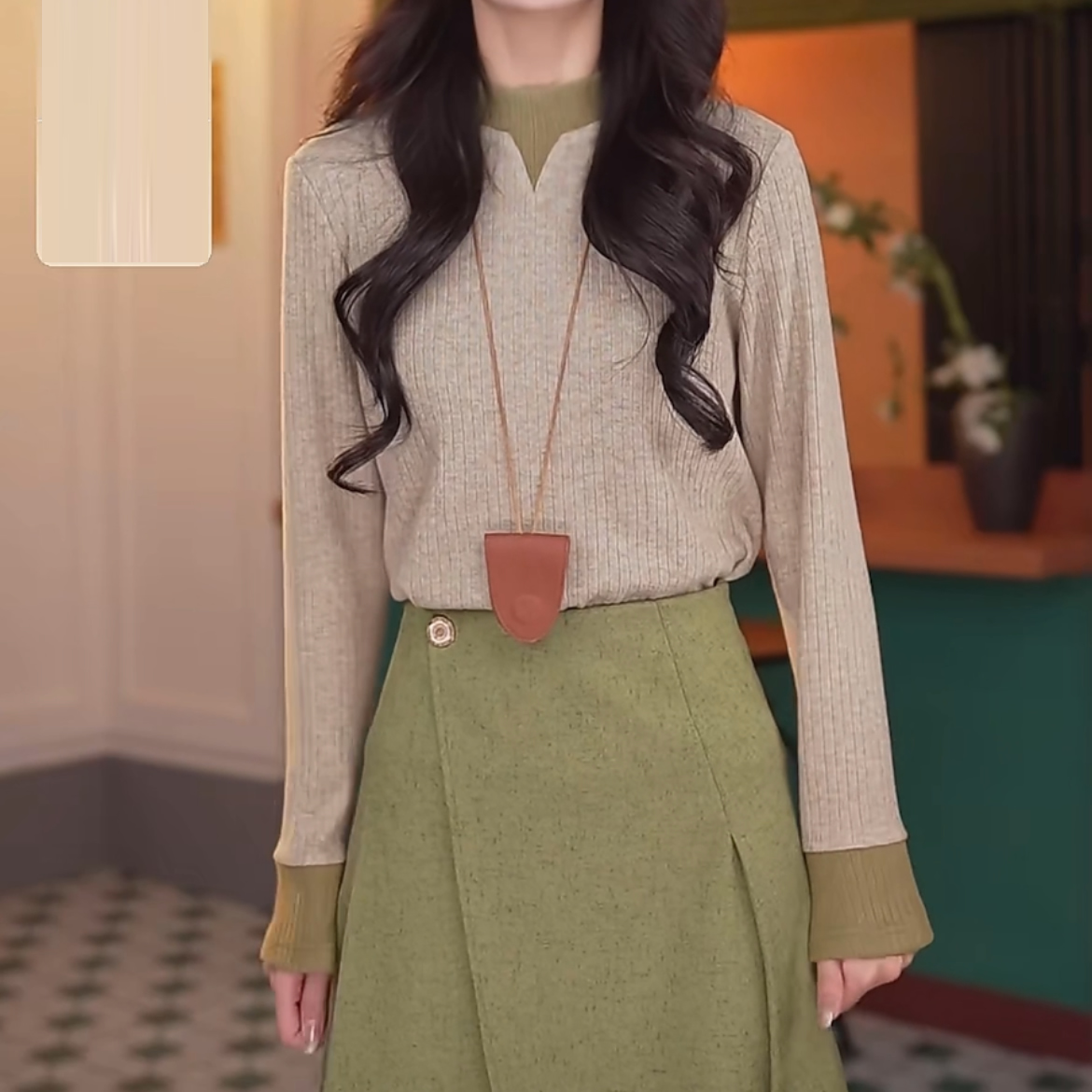 FA50242# 春水碧波秋冬港风复古长袖百搭打底衫拼色高弹上衣 服裝批發女裝批發服飾貨源
