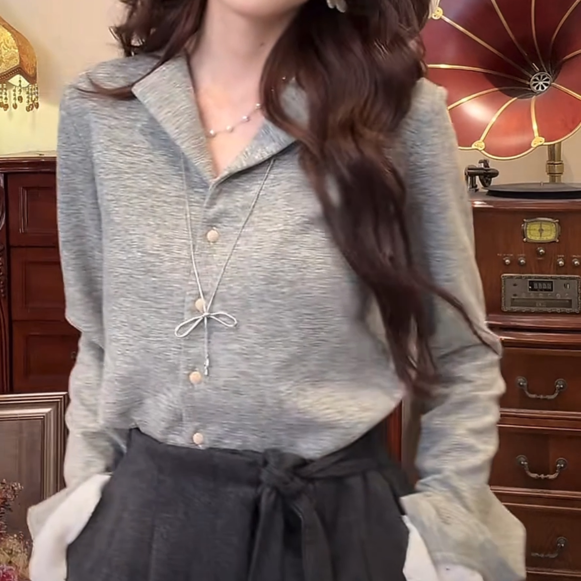 Home > 长袖雪纺衫、衬衫、上衣 > FA50243# 秋冬加绒加厚港风复古纯色长袖上衣开衫 服裝批發女裝批發服飾貨源
