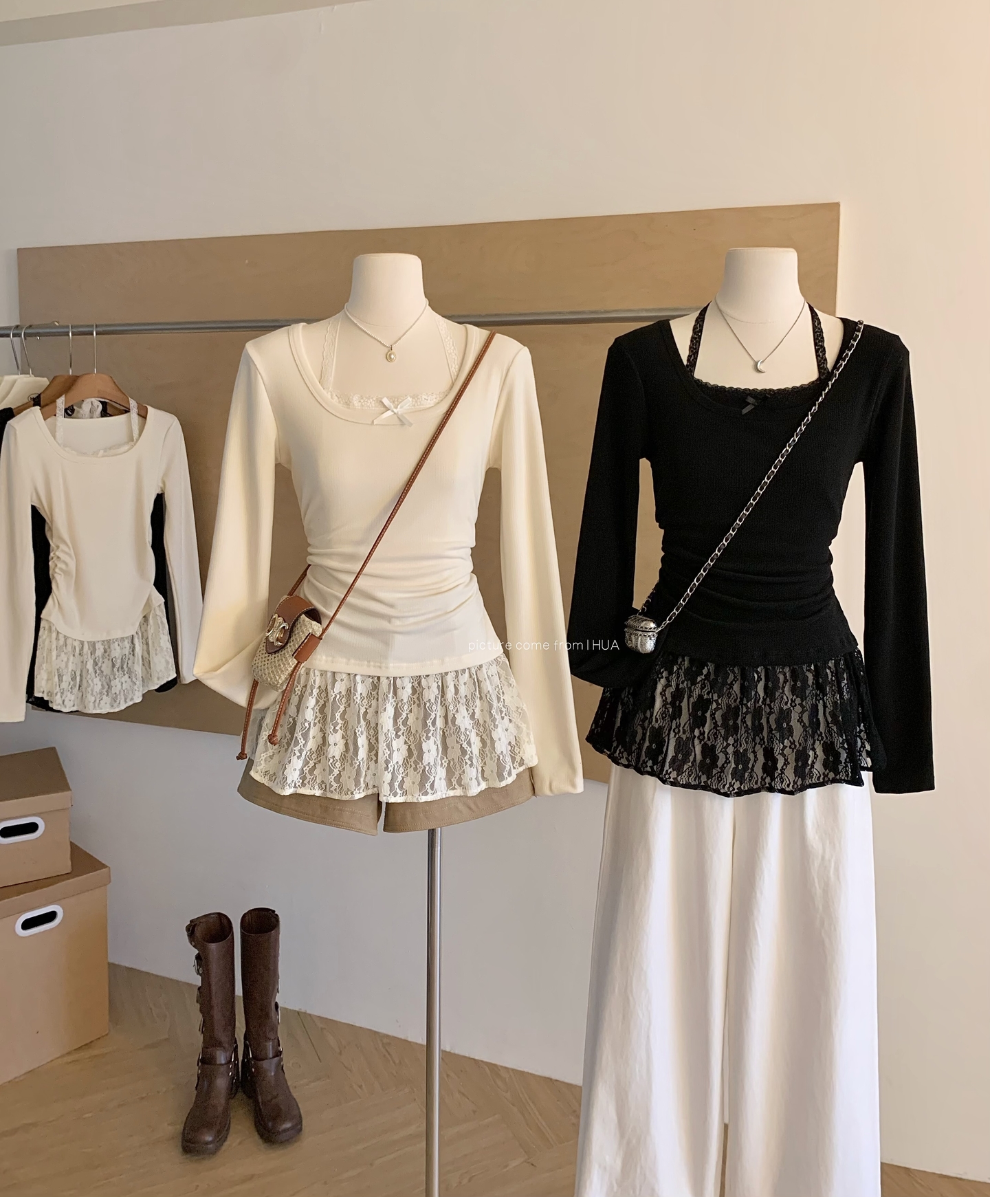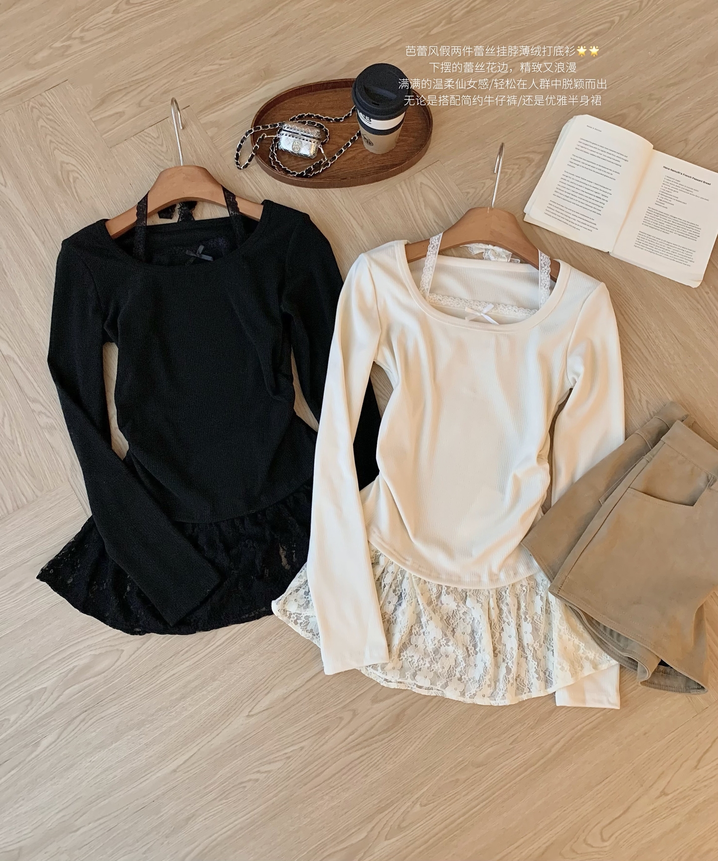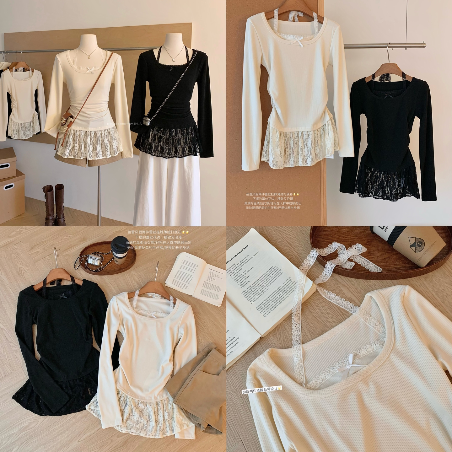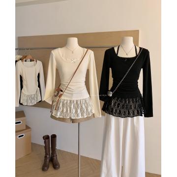 Home > 长袖T恤 > 时尚芭蕾风蕾丝拼接挂脖针织衫女冬季黑色甜美内搭打底别致上衣潮 服裝批發女裝批發服飾貨源