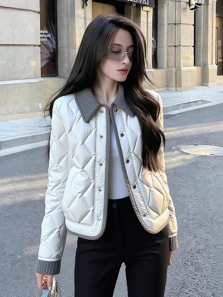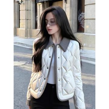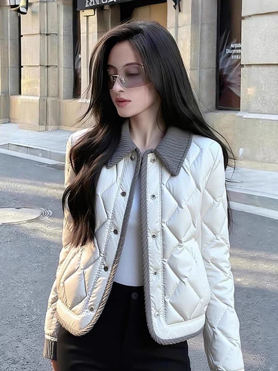 FA50916# 白色撞色外套新款冬季高端时髦洋气设计感夹棉加厚小香风棉衣 服裝批發女裝批發服飾貨源
