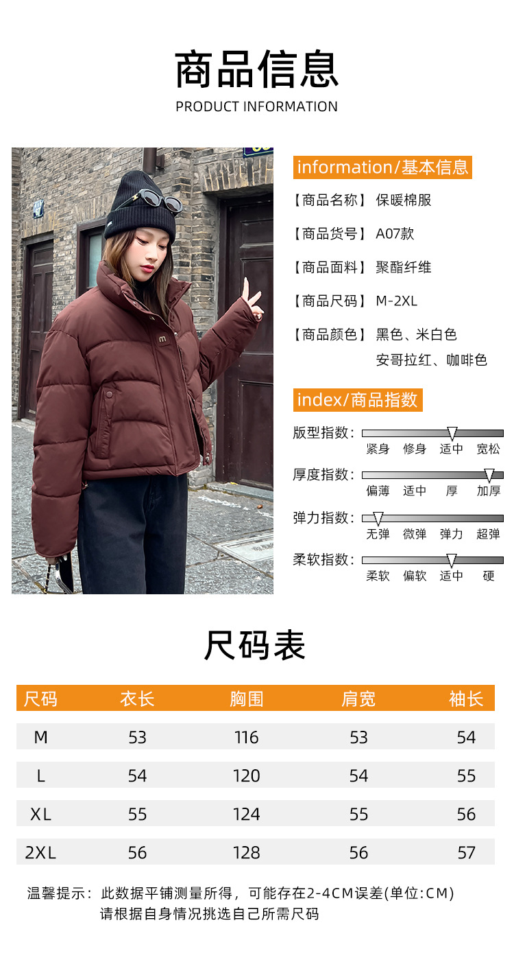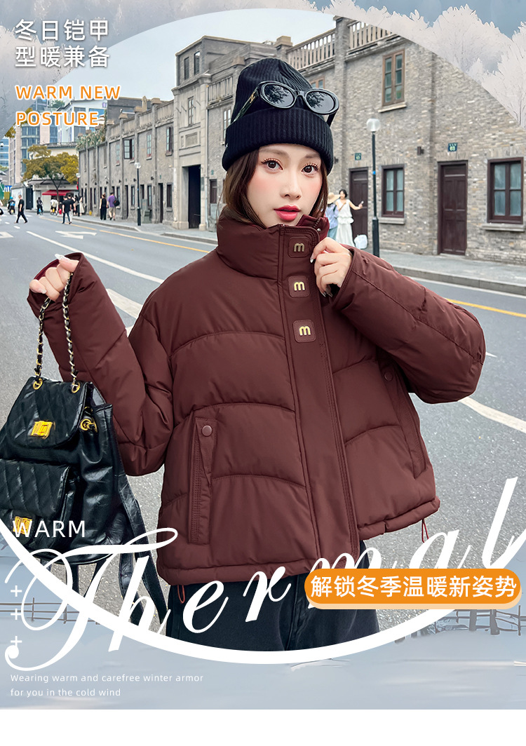 欧货复古短款立领夹棉外套女秋冬季高级感时尚百搭加厚棉衣面包服 服裝批發女裝批發服飾貨源