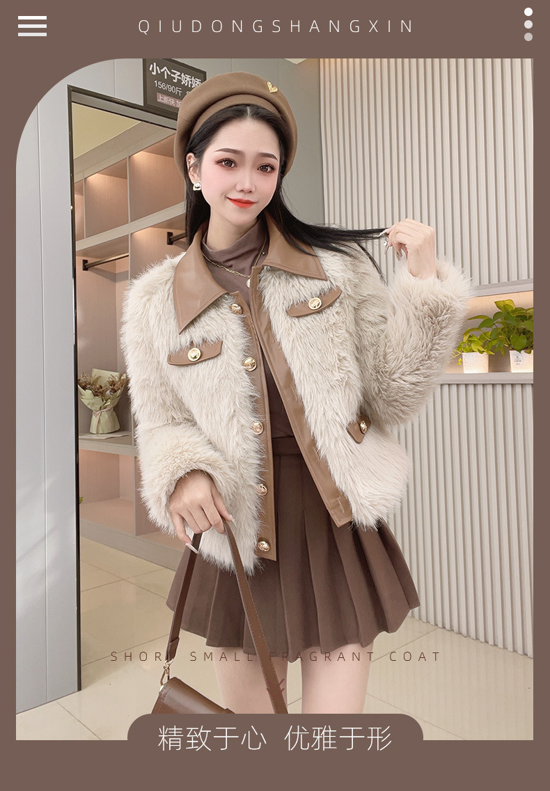 小香风毛毛外套女秋冬新款复古拼皮短款羔毛棉服小个子加厚 服裝批發女裝批發服飾貨源