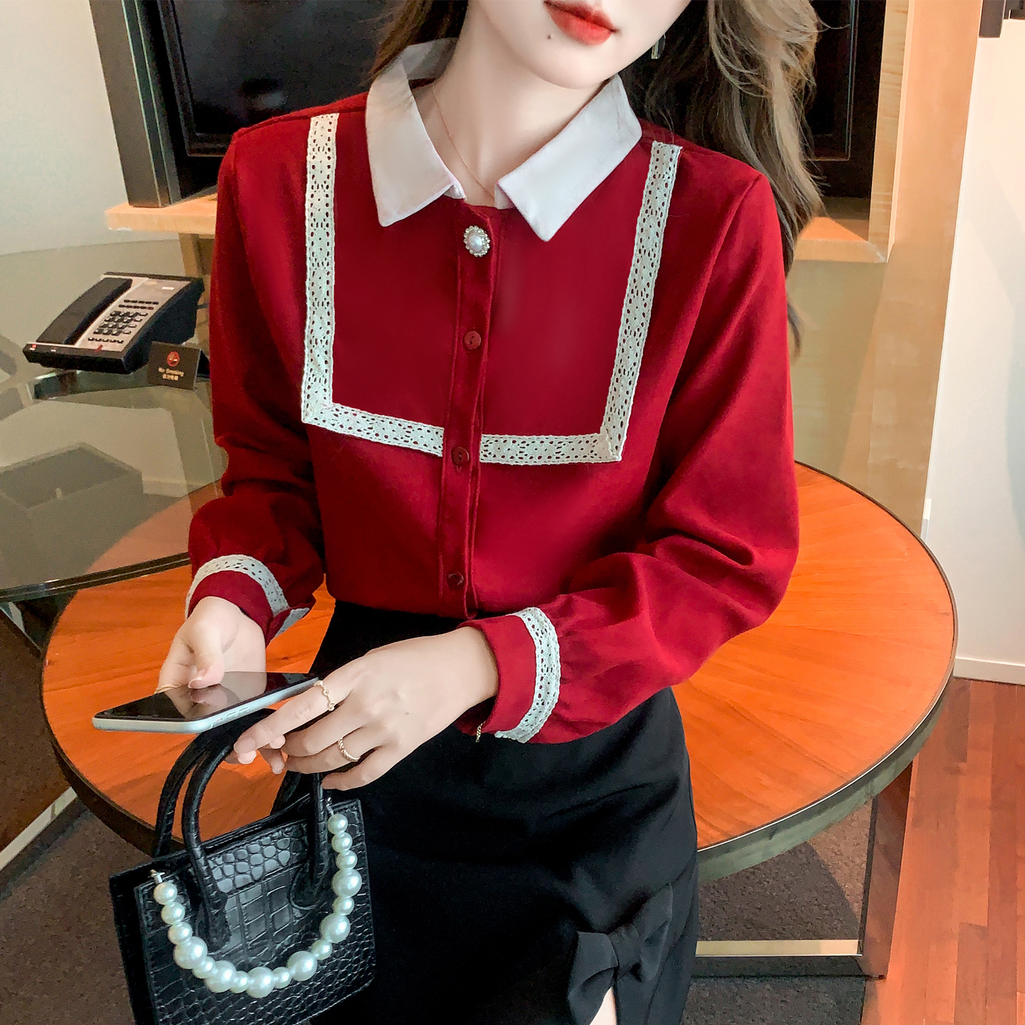 FA51096# 本命年春装新款衬衫女韩版百搭红色洋气时尚打底衫上衣 服裝批發女裝批發服飾貨源