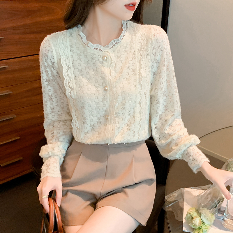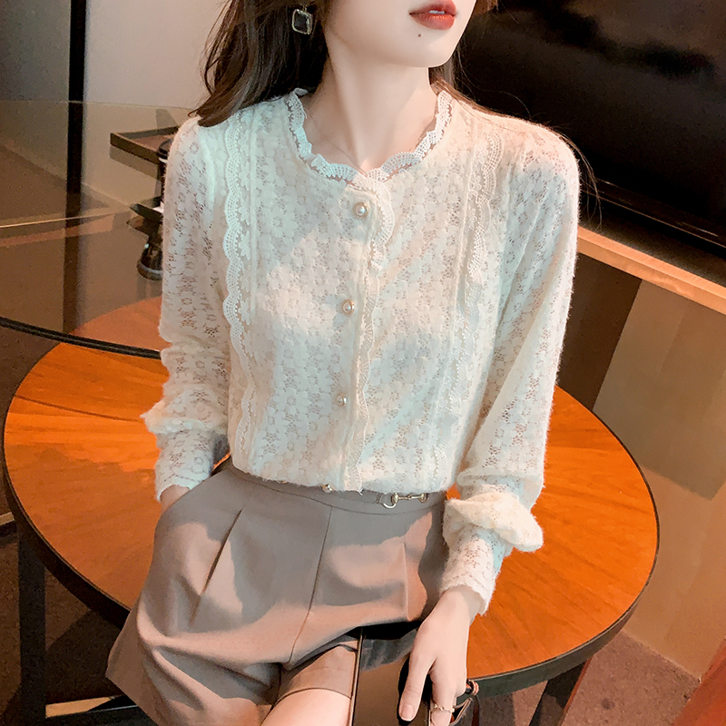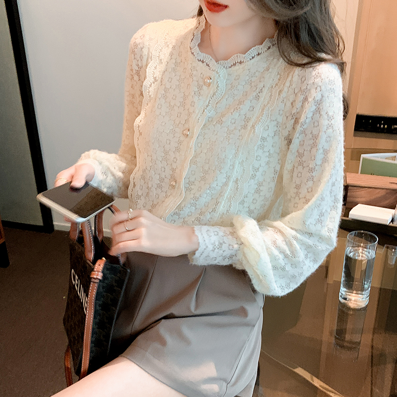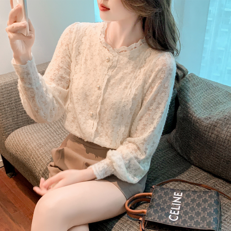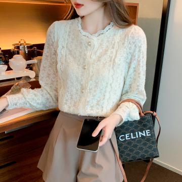 FA51100# 春装新款蕾丝衫花边灯笼袖长袖衬衫洋气打底衫通勤上衣 服裝批發女裝批發服飾貨源