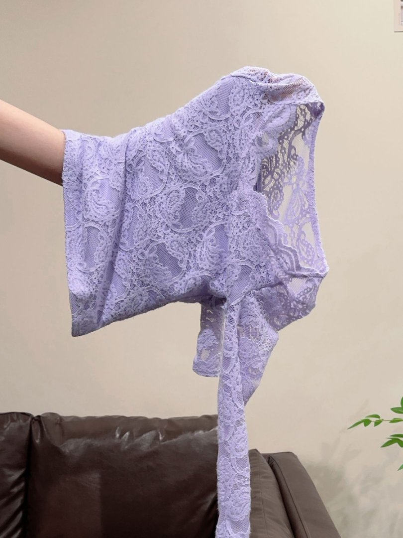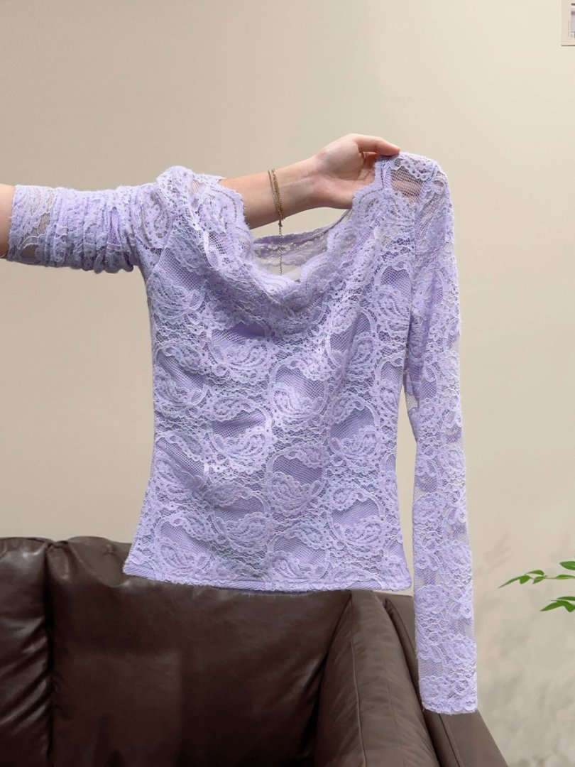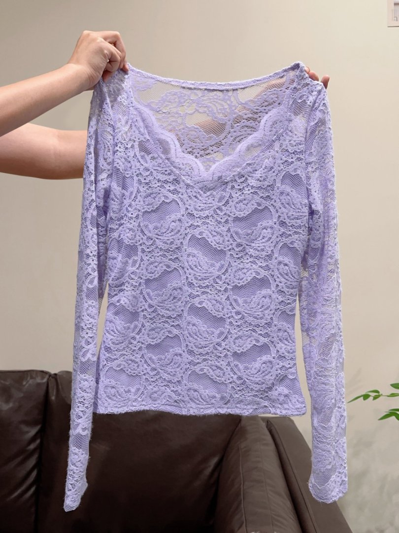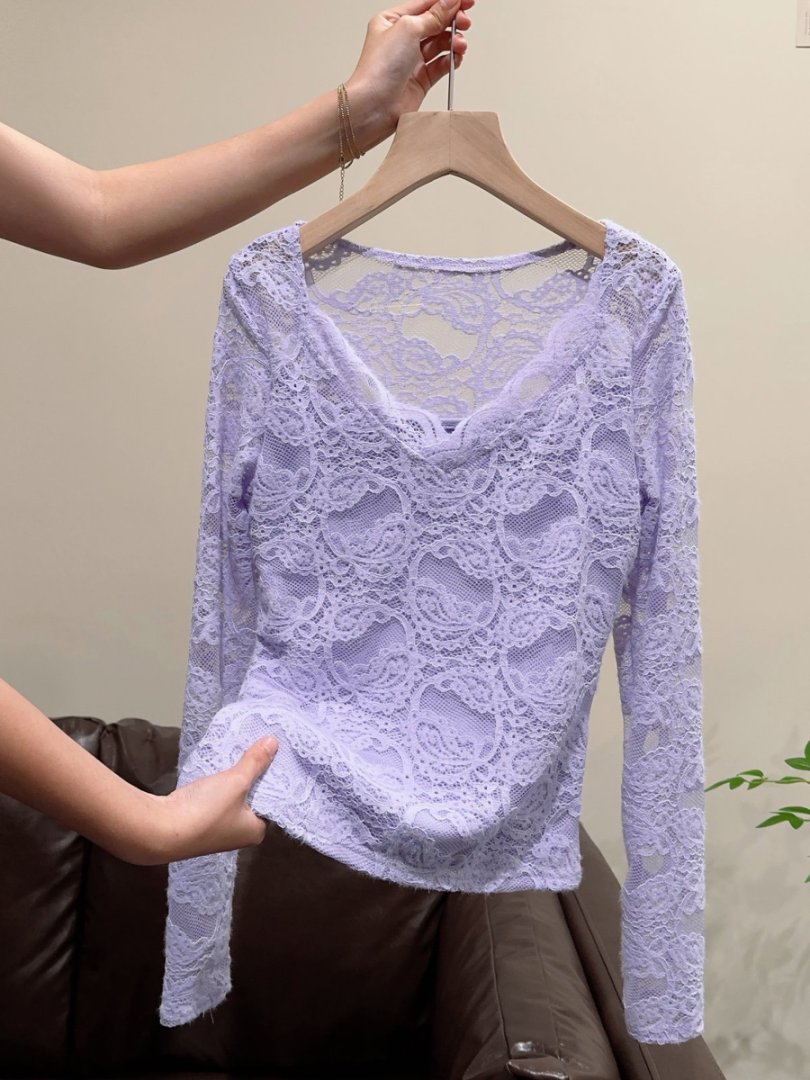 FA51112# 纯欲风蕾丝拼接短款打底衫T恤女秋冬季新款修身显瘦内搭上衣 服裝批發女裝批發服飾貨源
