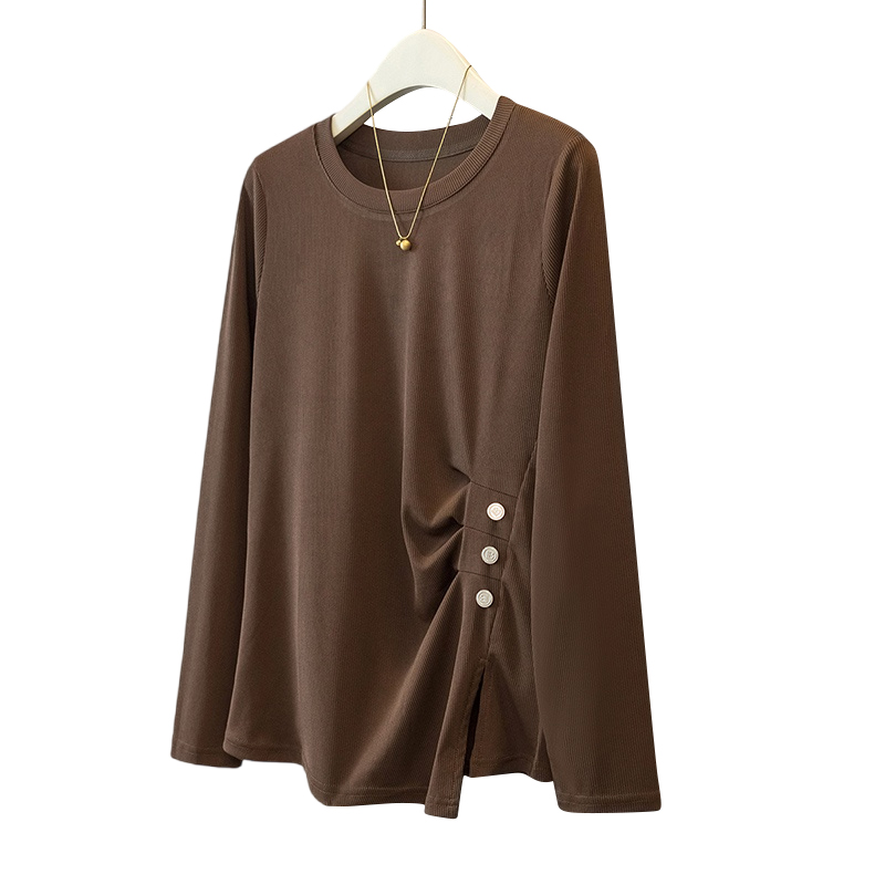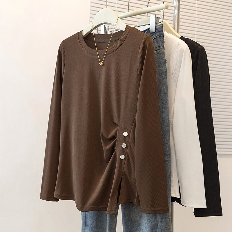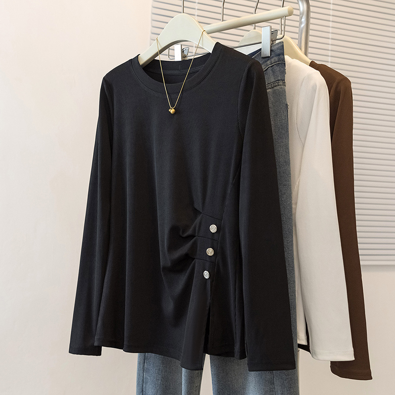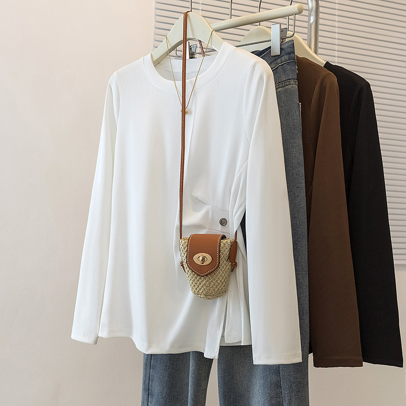 FA51115# 大码女装设计感小众开叉洋气t恤女胖mm简约韩版长袖圆领上衣 服裝批發女裝批發服飾貨源