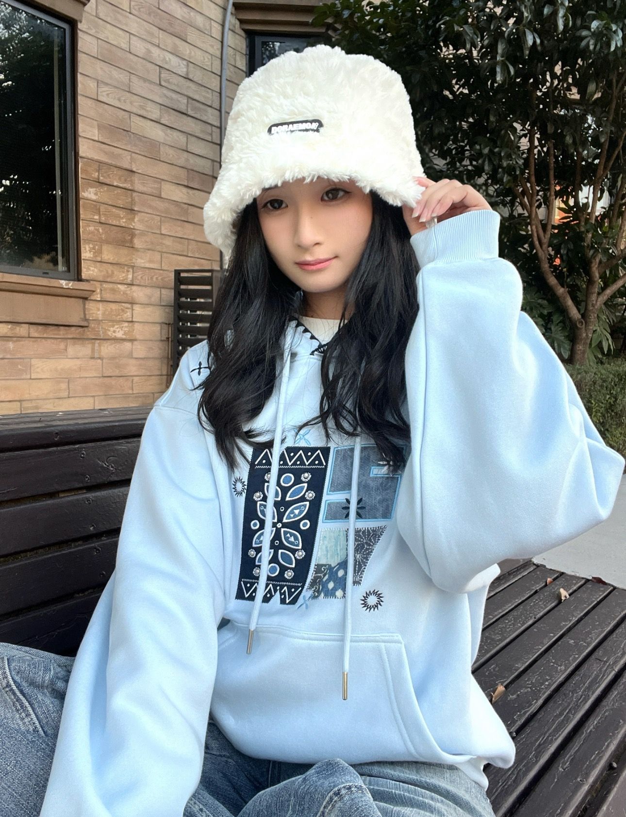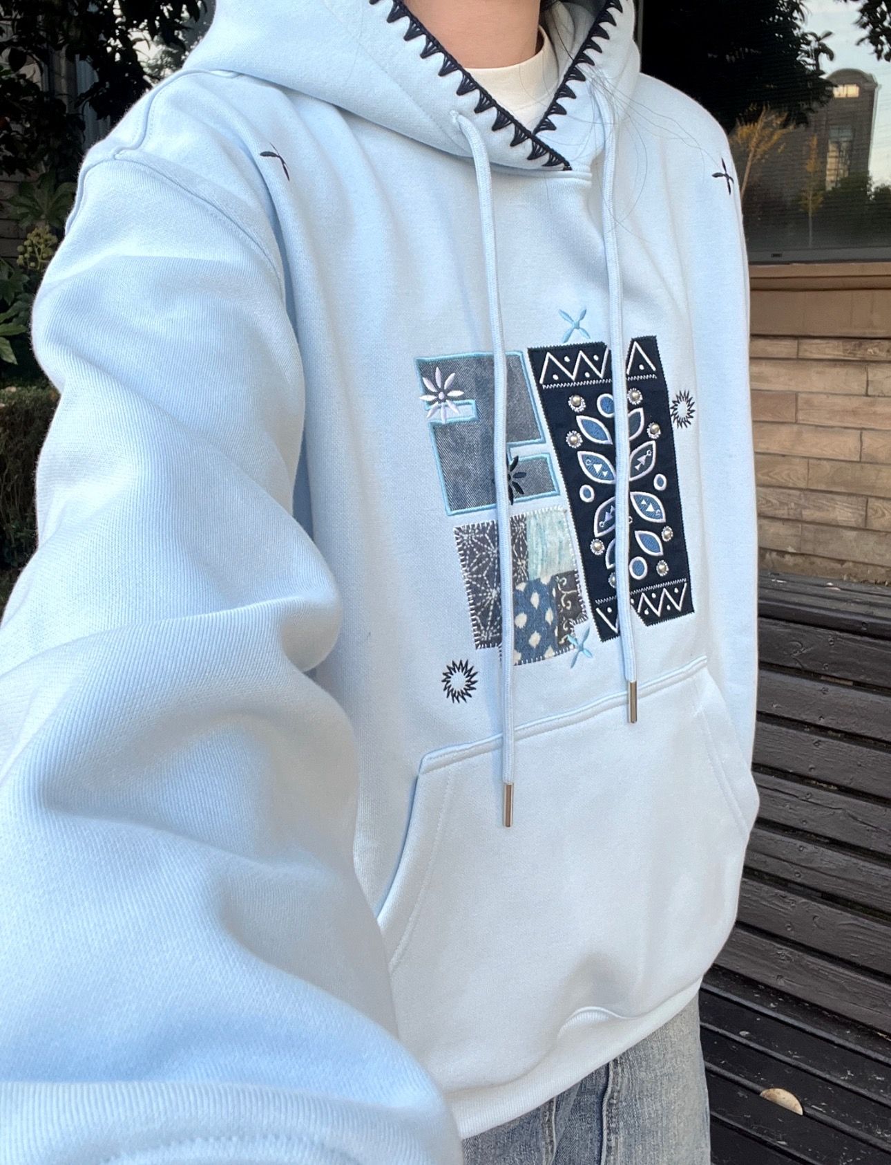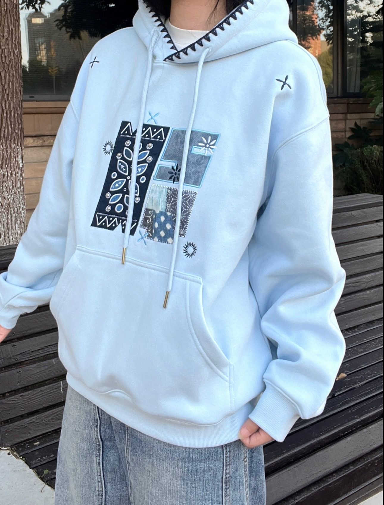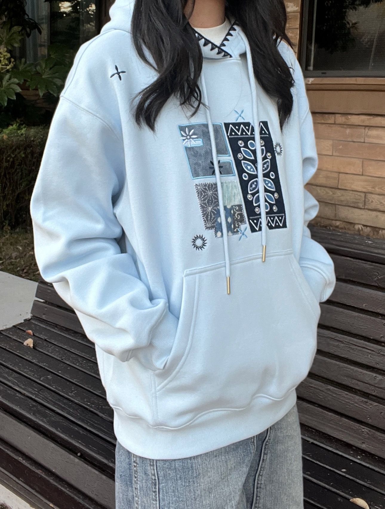 FA51131# 韩国chic秋冬新款长袖订珠刺绣连帽卫衣女美式宽松加绒加厚外套潮 服裝批發女裝批發服飾貨源