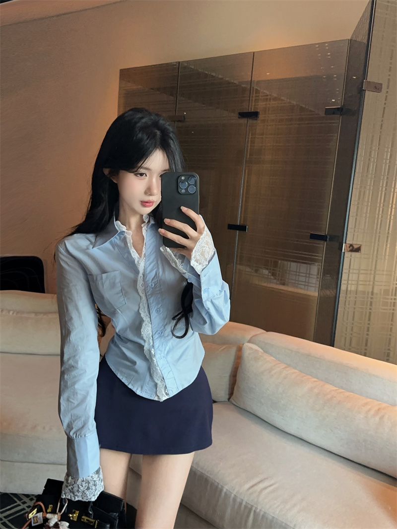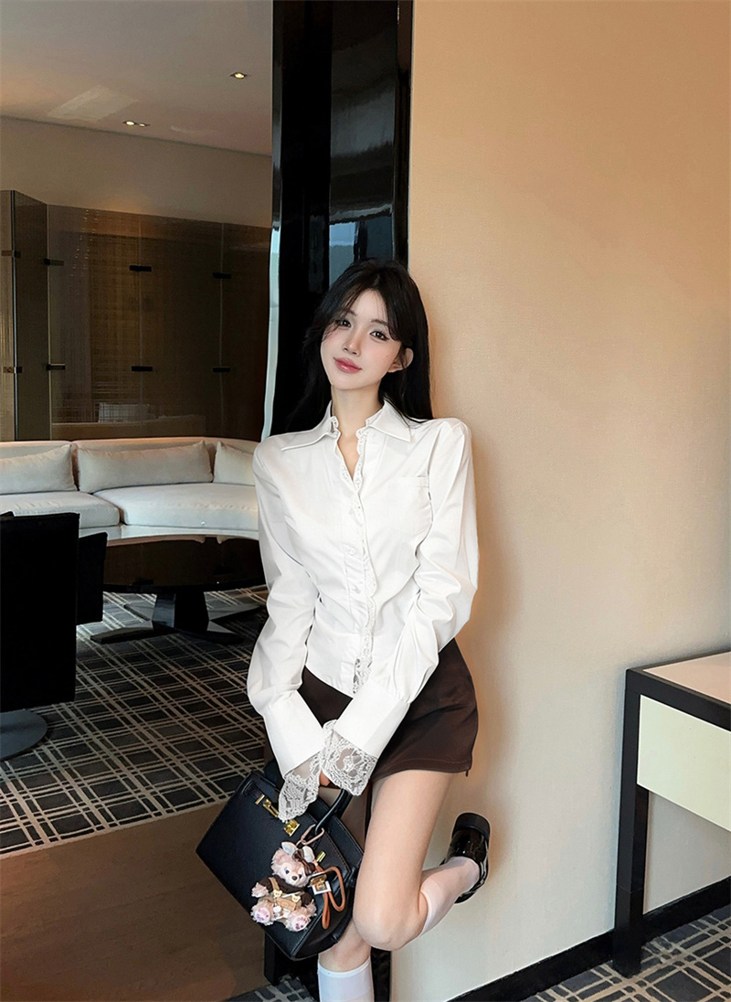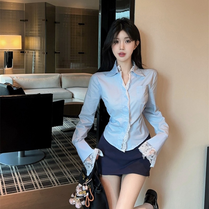 FA51139# 设计感蕾丝拼接气质长袖衬衫+多穿法包臀半身裙二件套装女 服裝批發女裝批發服飾貨源