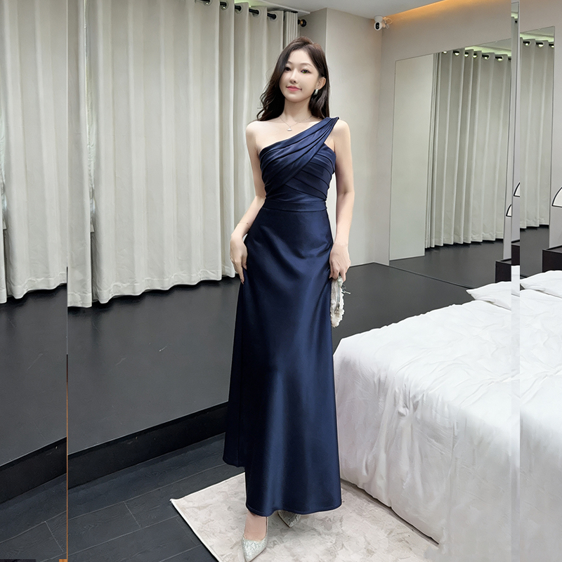 FA51140# 高端大气晚礼服女高级感主持人新款宴会重要场合绝美斜肩长裙 服裝批發女裝批發服飾貨源