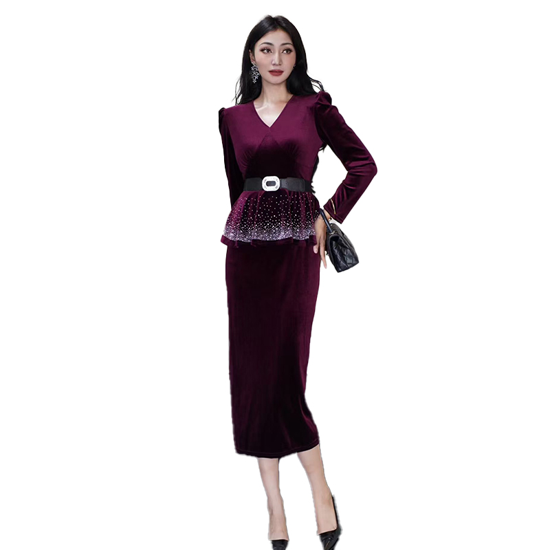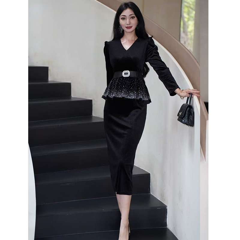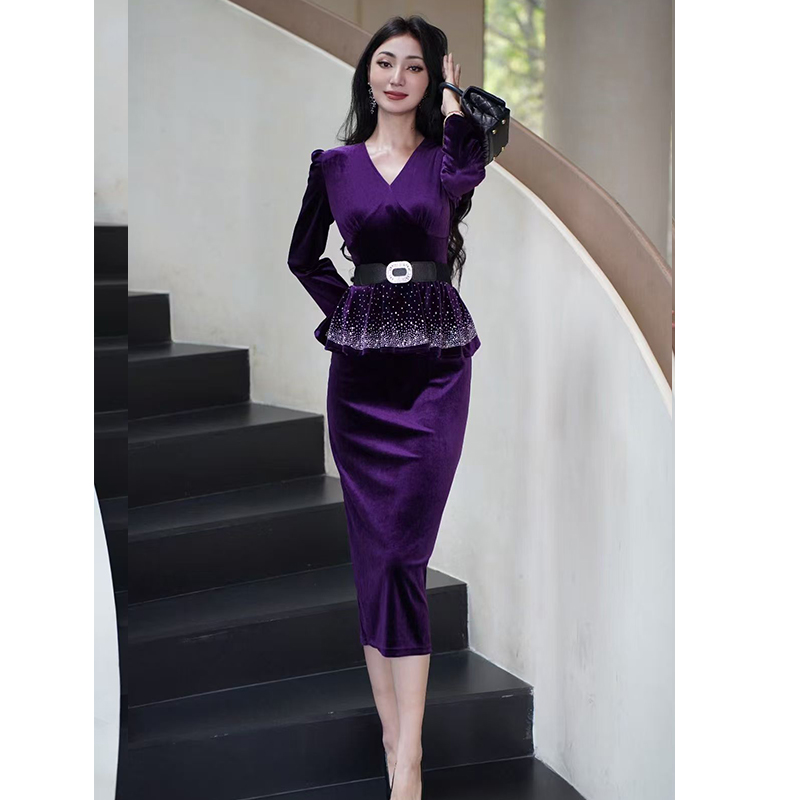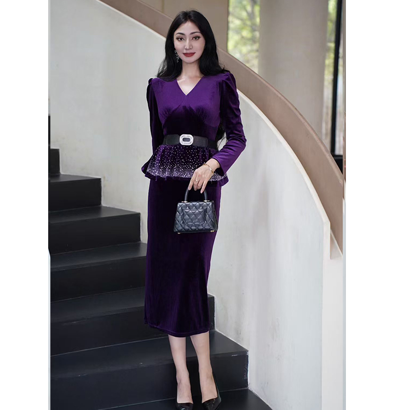 FA51141# 炸街网红爆款秋新款时髦气质优雅金丝绒时尚名媛风连衣裙 服裝批發女裝批發服飾貨源