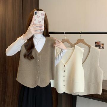FA51978# 大码女装新简约百搭V领纯色内搭毛衣马甲柔软单排扣坎肩 服裝批發女裝批發服飾貨源