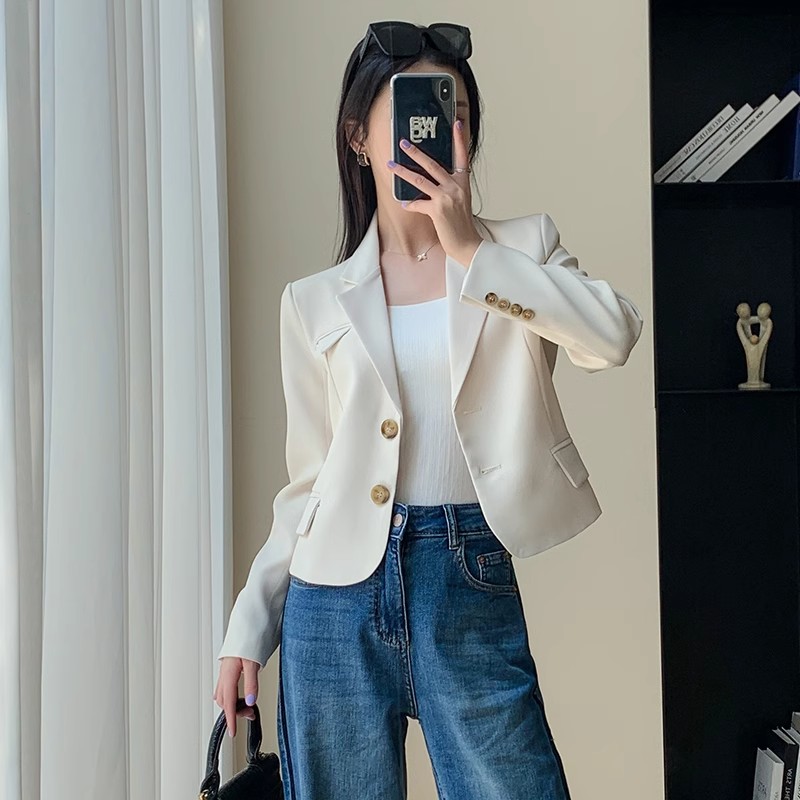 FA51986# 小西服上衣新款休闲米白色短款西装外套女春夏款高级感小个子 服裝批發女裝批發服飾貨源