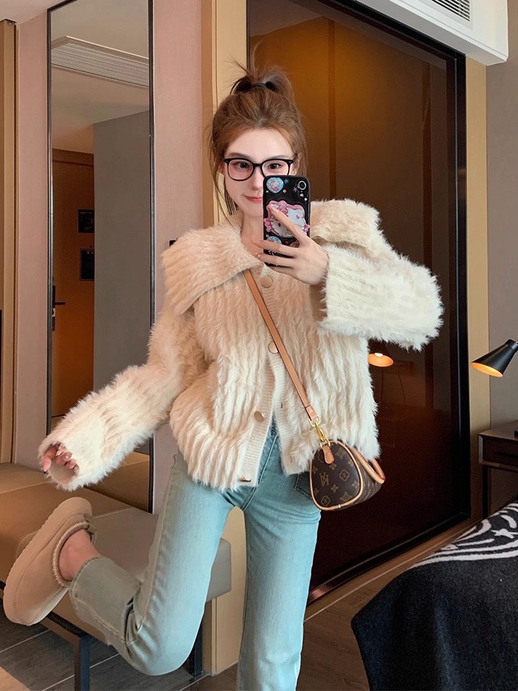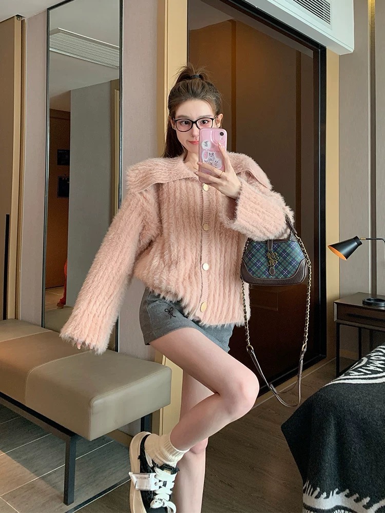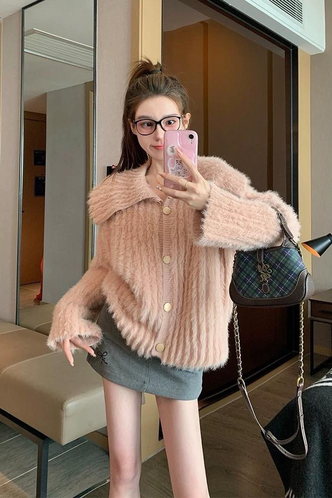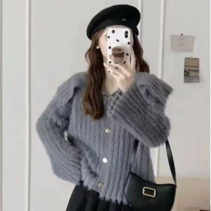 FA51999# 马海毛娃娃领开衫针织外套女秋冬新款慵懒风软糯加厚外穿毛衣 服裝批發女裝批發服飾貨源